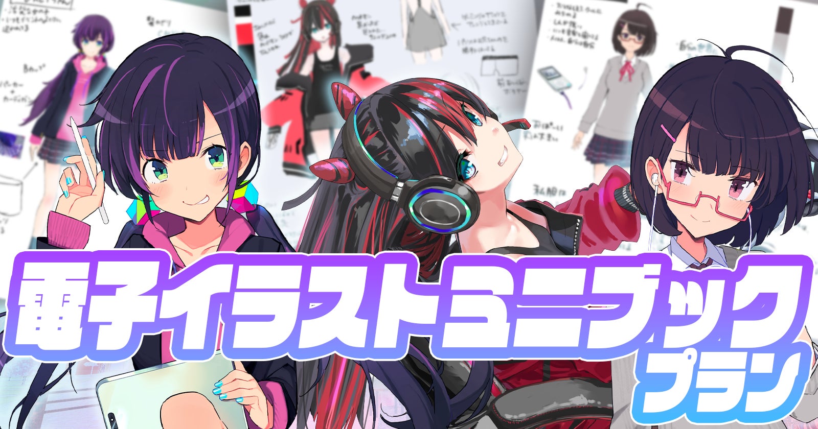 Vketガールズ3人のデザインラフ画や描き下ろしイラストを収録した電子版イラストミニブックです!