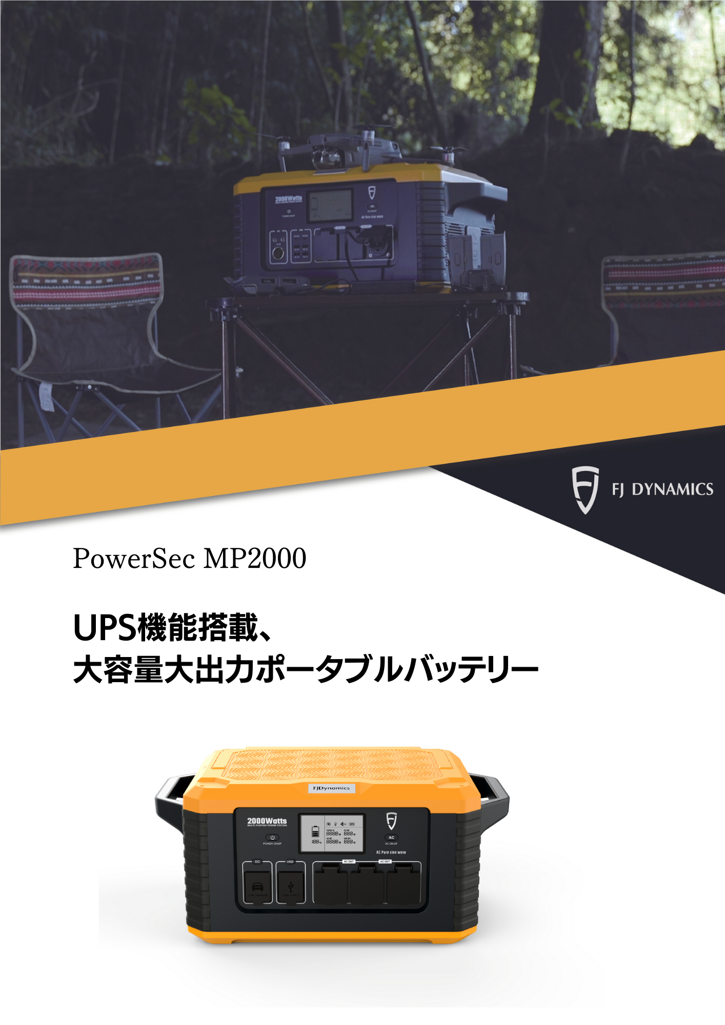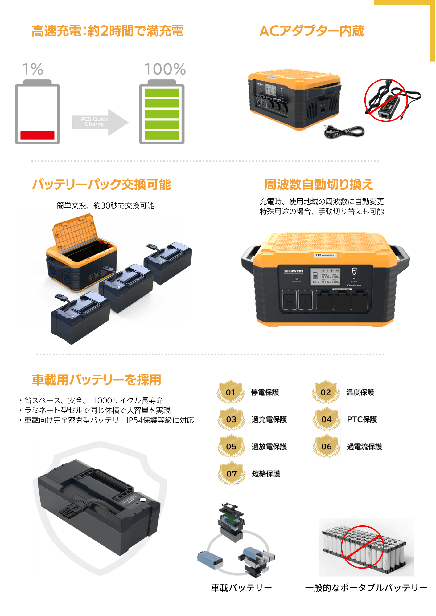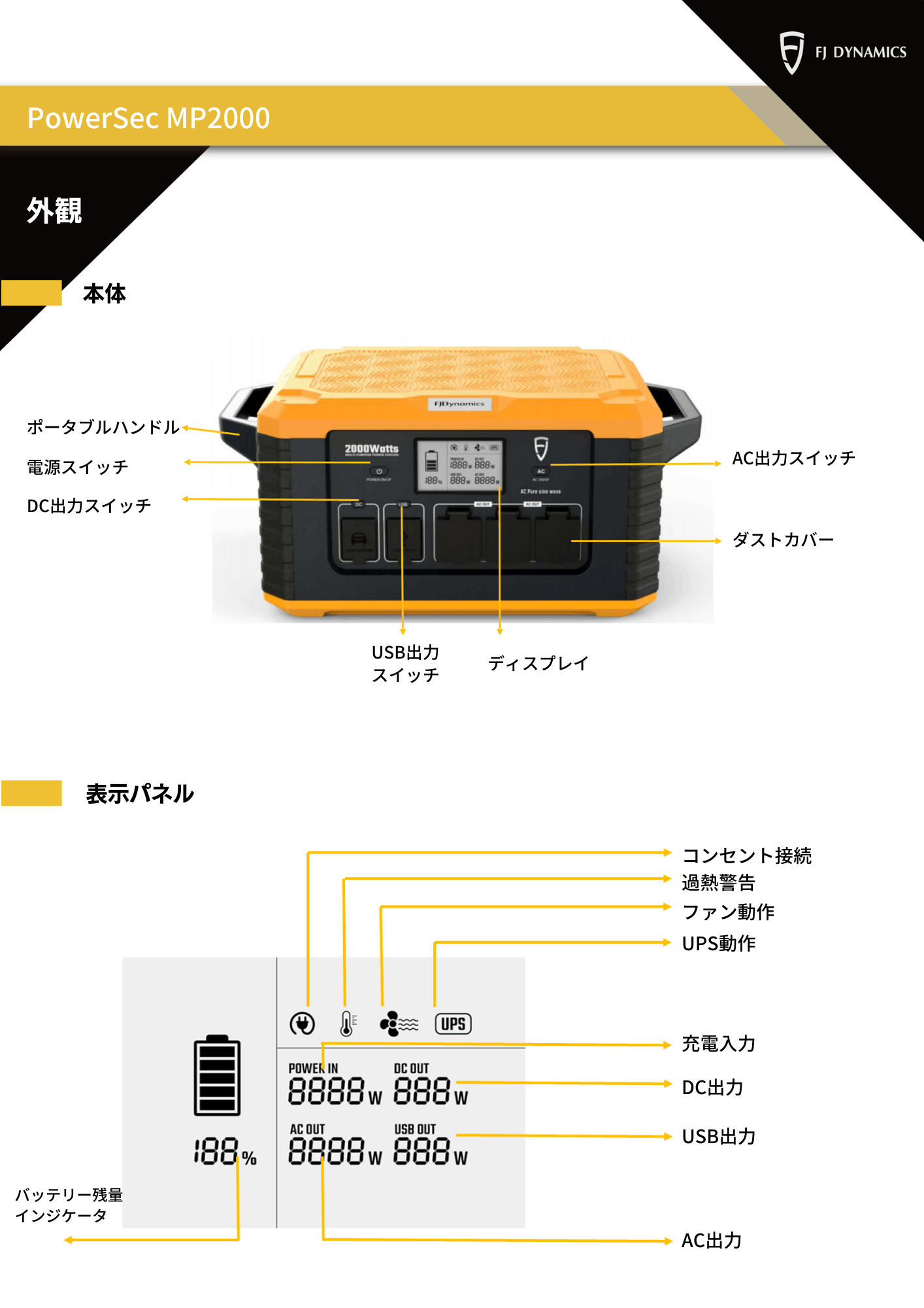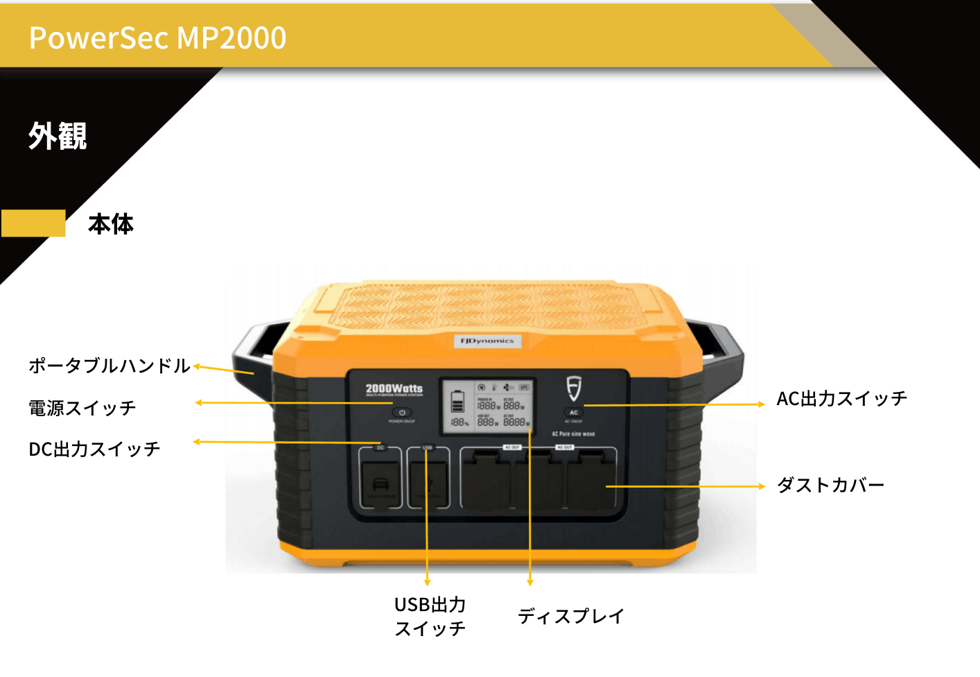 UPS機能搭載、大容量大出力ポータブルバッテリーPowerSec MP2000製品説明