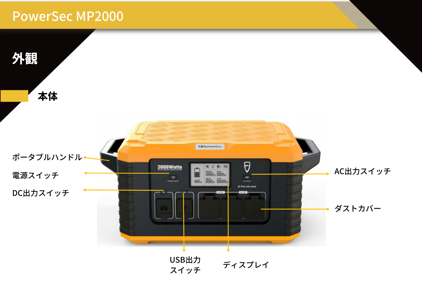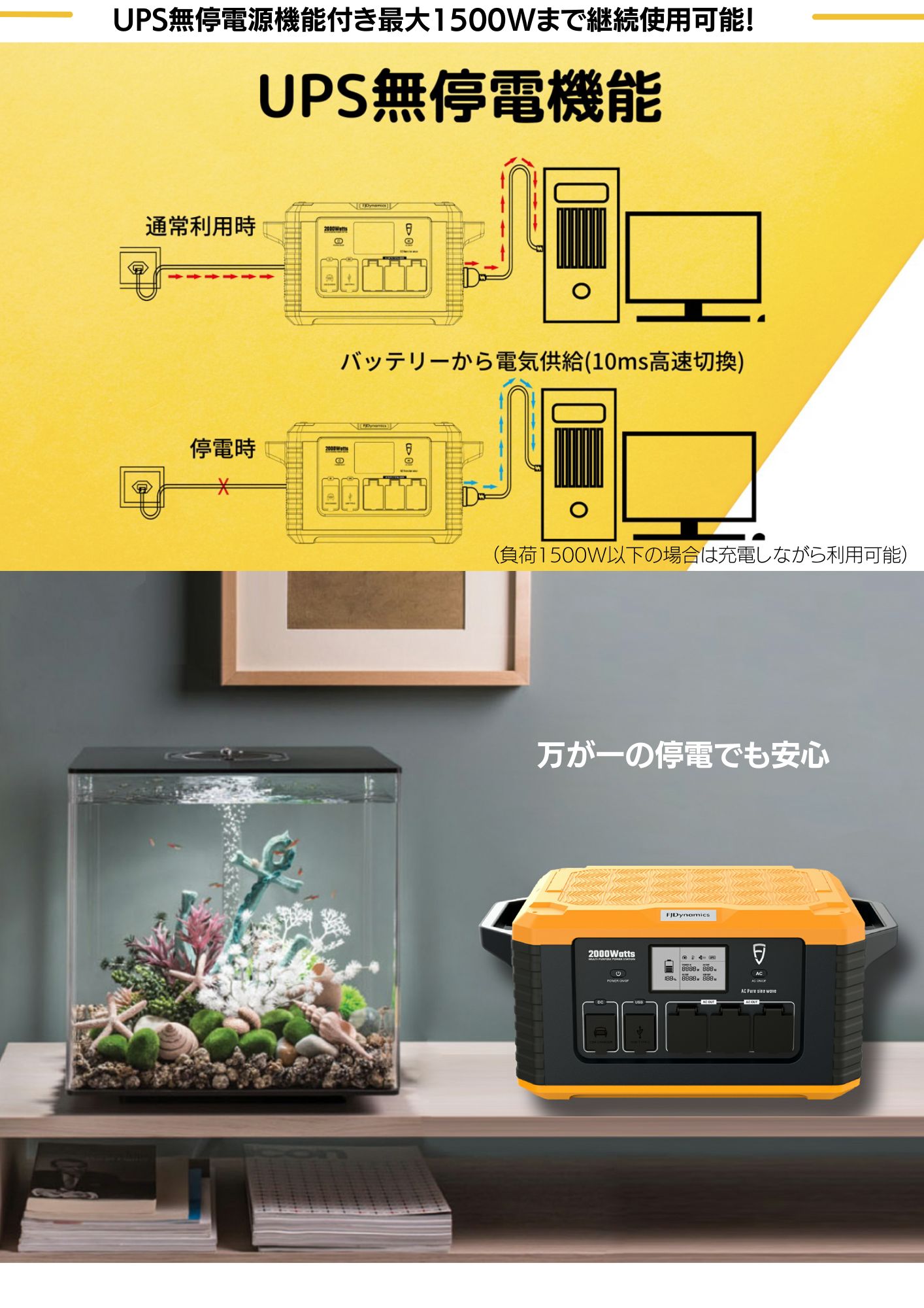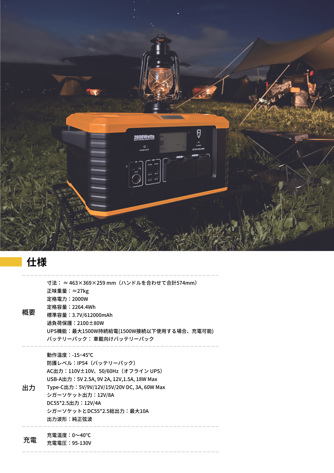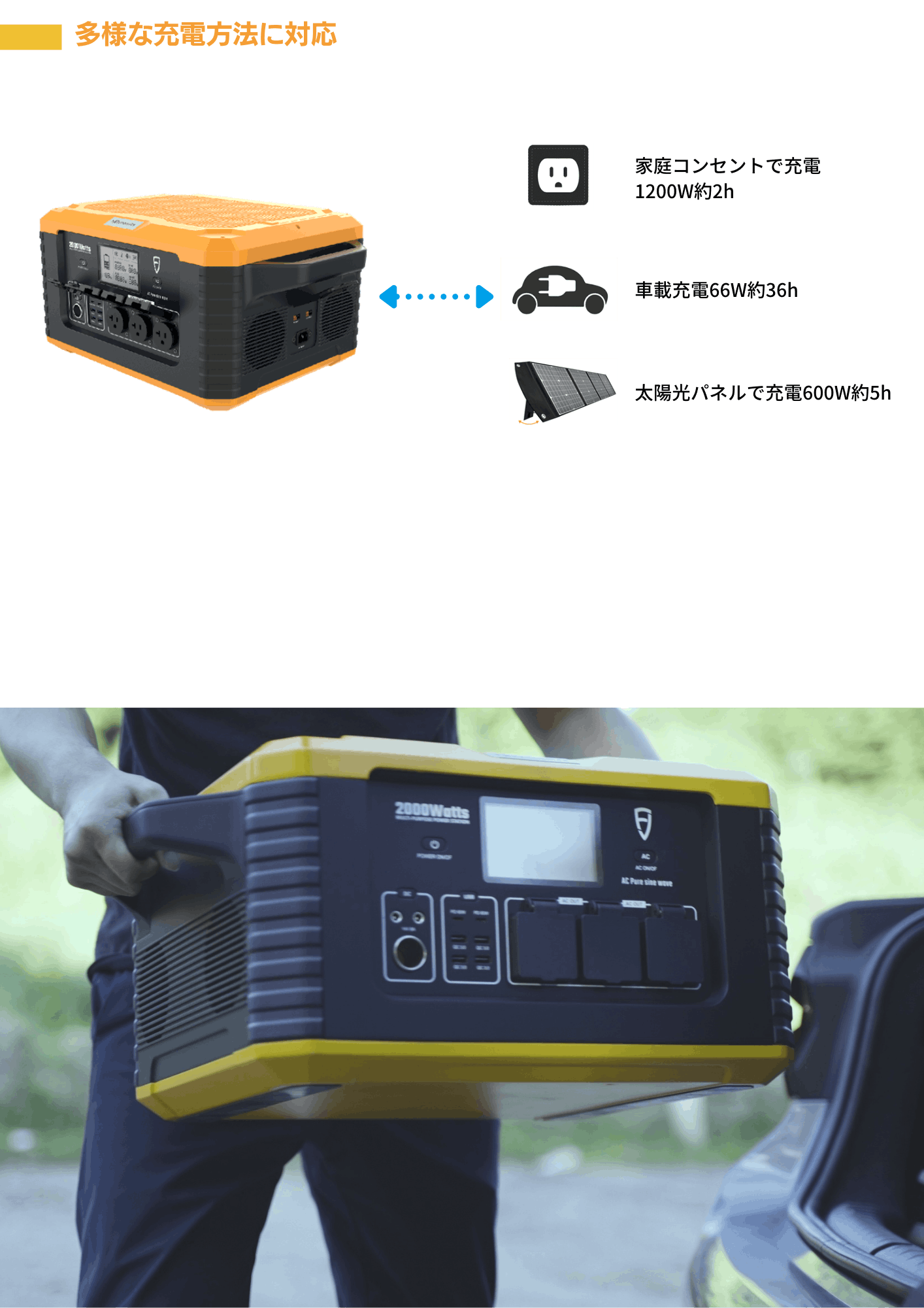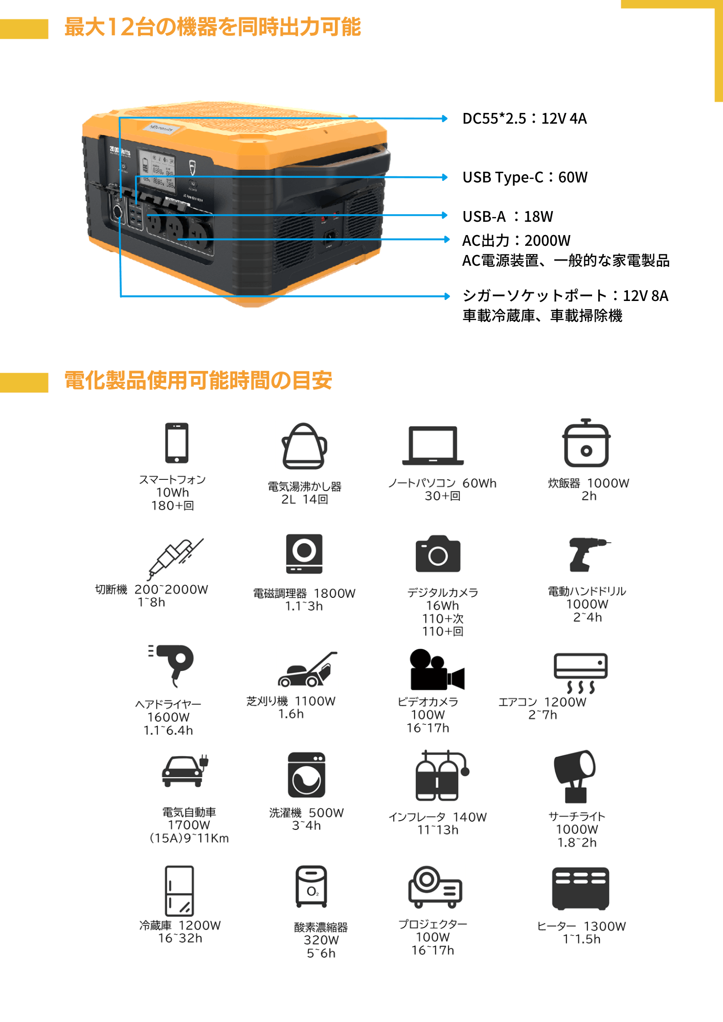 UPS機能搭載、大容量大出力ポータブルバッテリーPowerSec MP2000製品説明