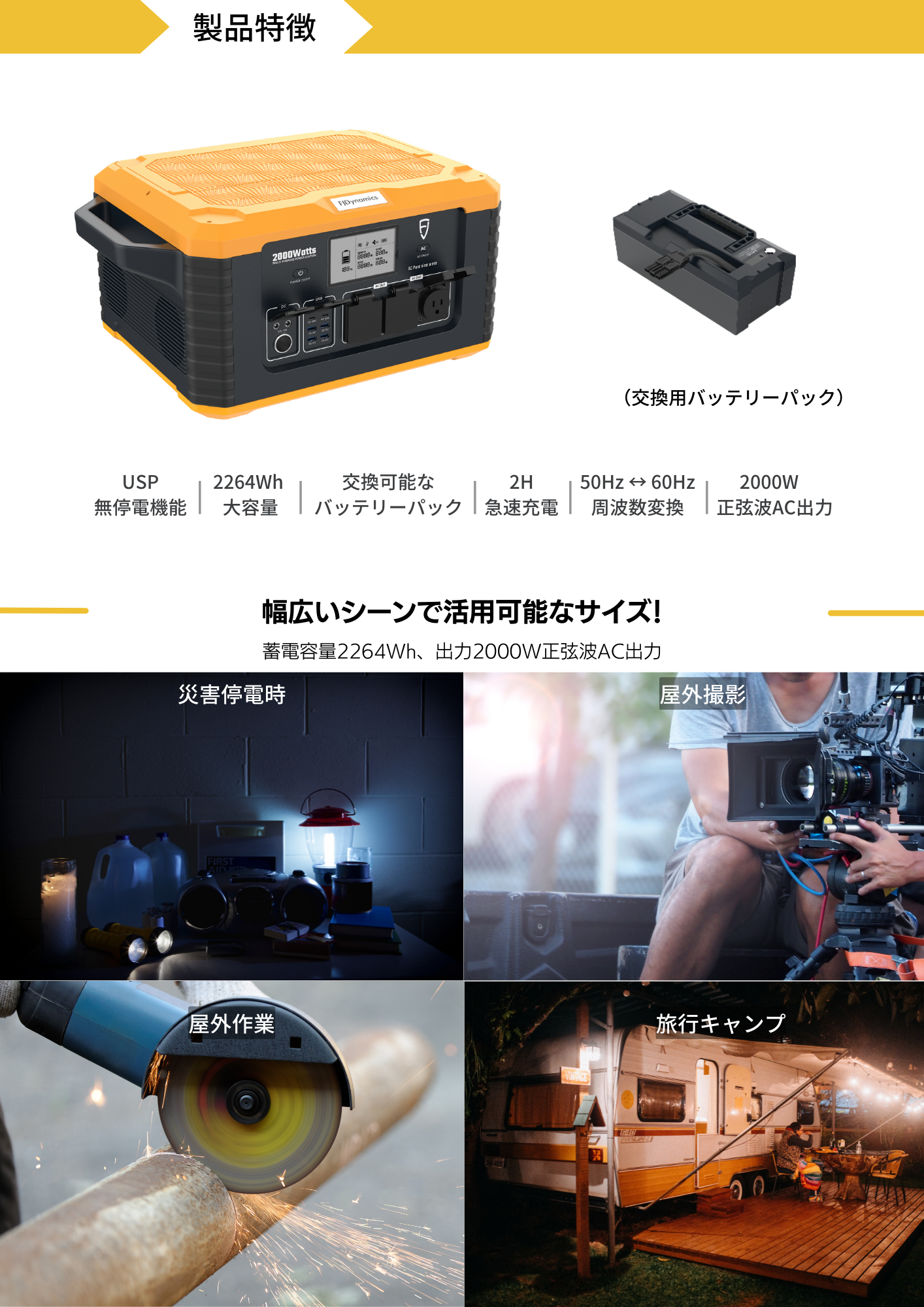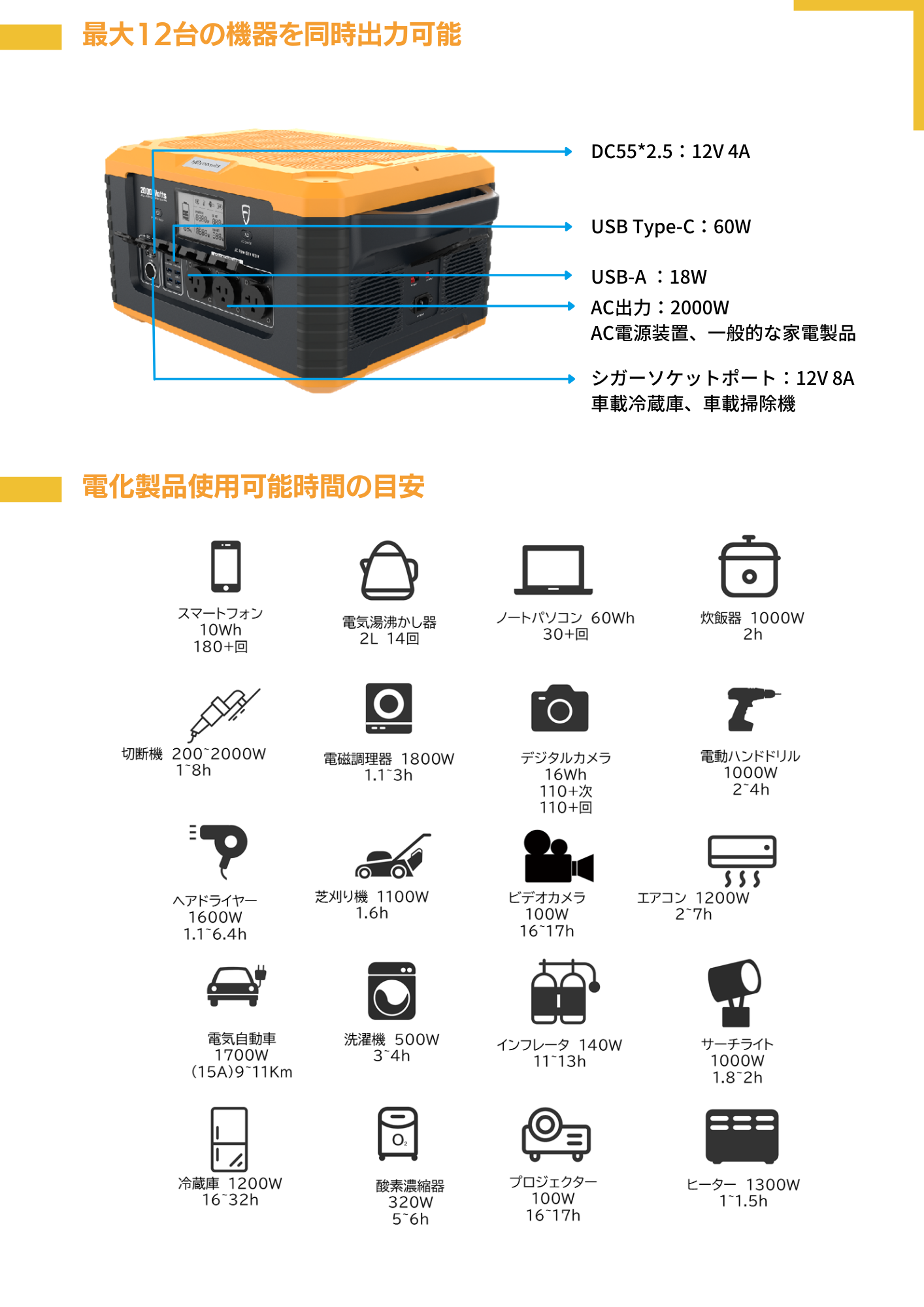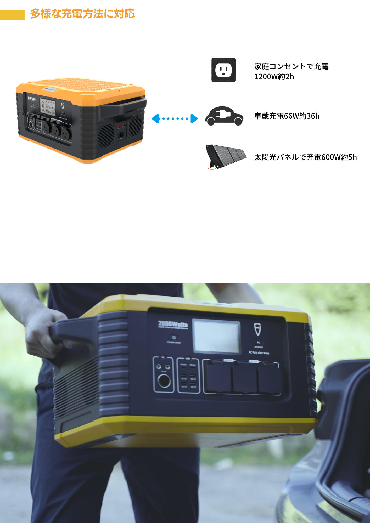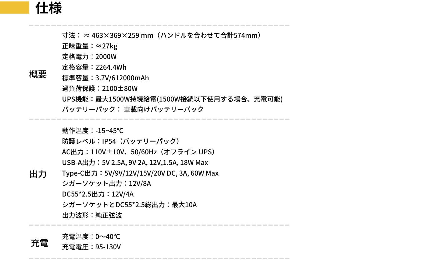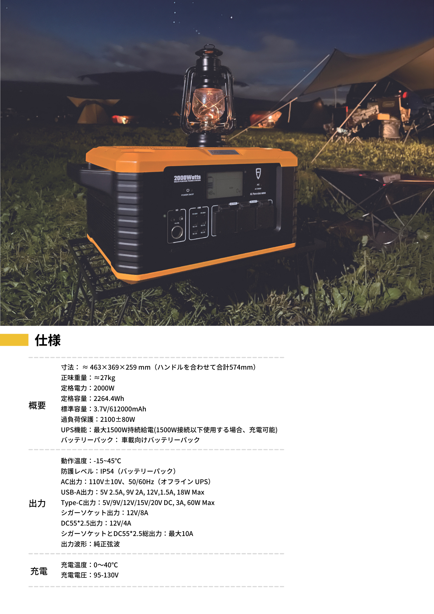 出力は? ⇒ 2000W正弦波AC出力