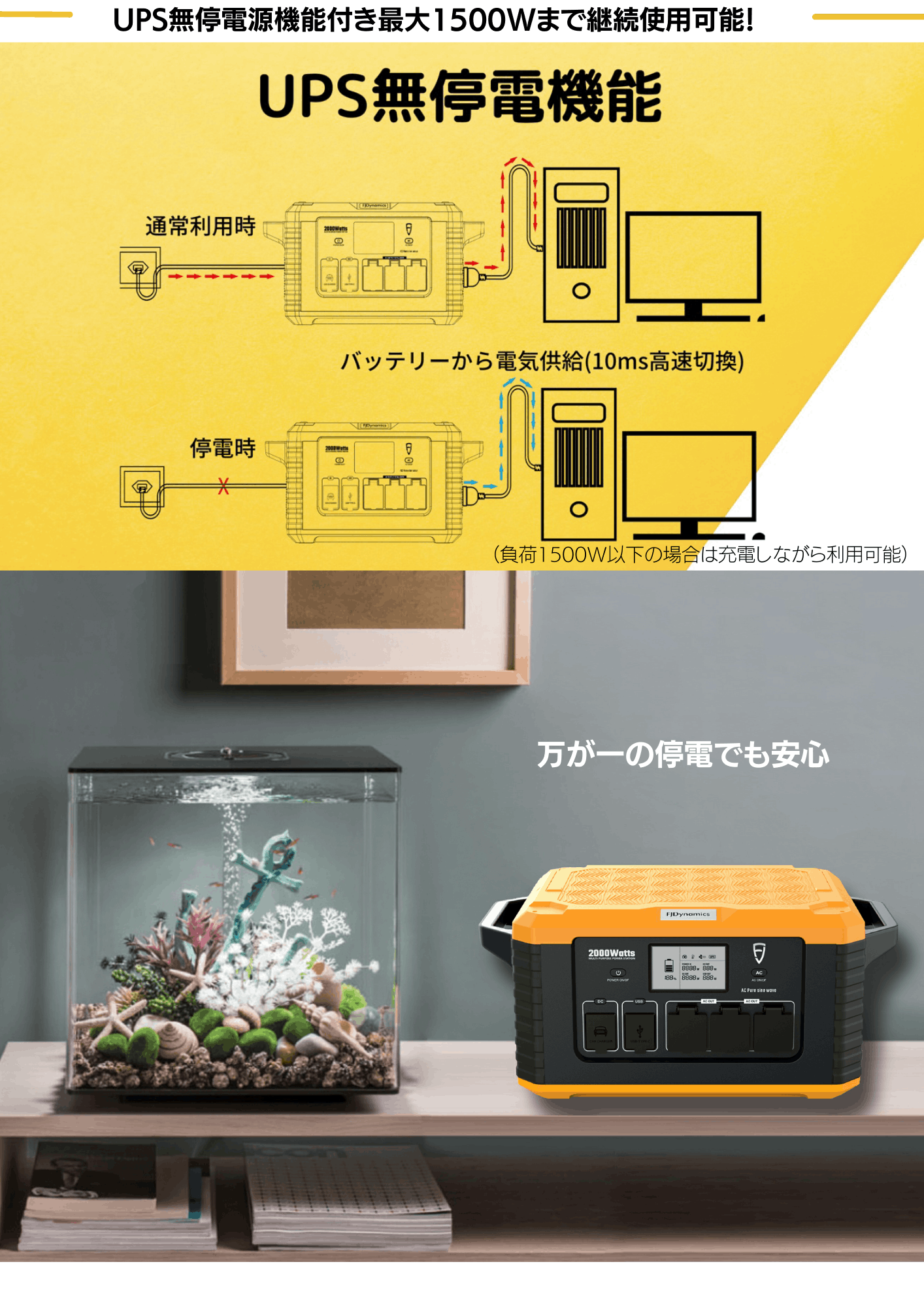 【UPS機能搭載、大容量大出力ポータブルバッテリーPowerSec MP2000】