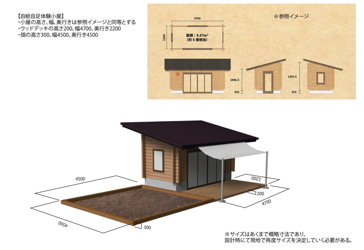 このアイデアでは、自給自足がコンセプトの小屋(レンタルスペース)を建設する予定です。
