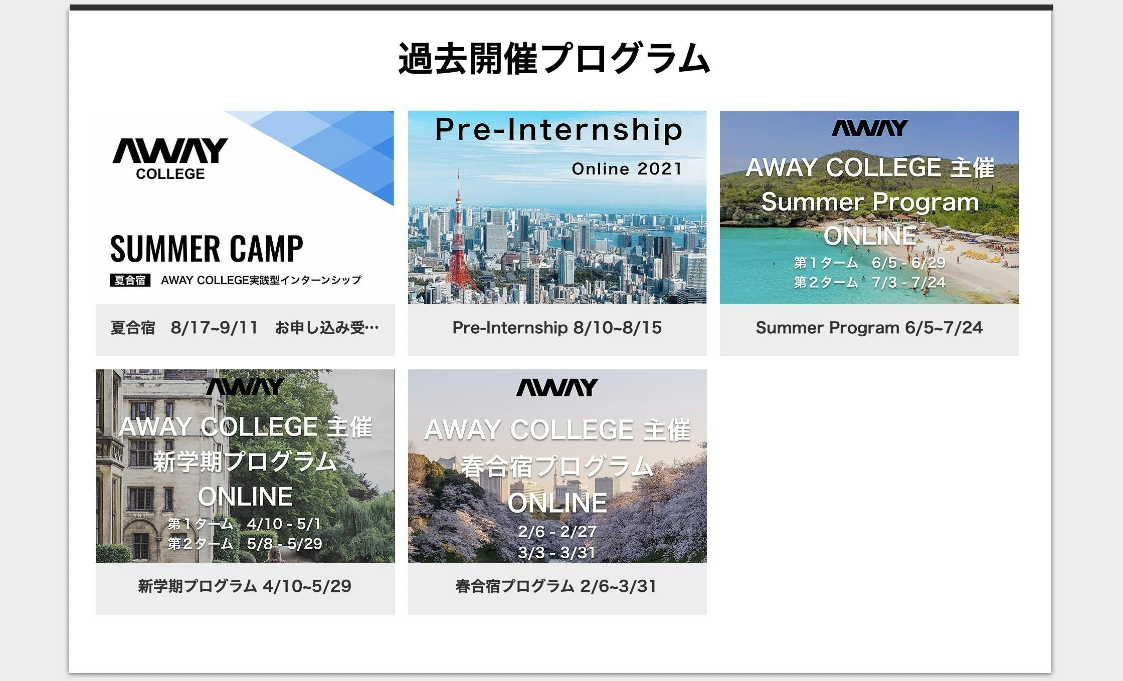 ーAWAY COLLEGEのプログラム・オンラインイベントの詳細、参加者の声を発信しています。