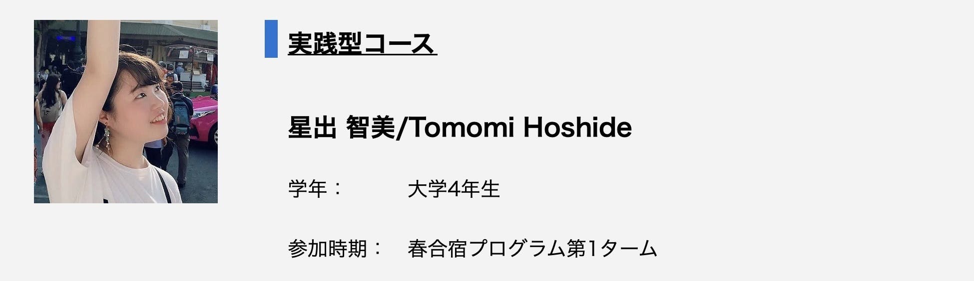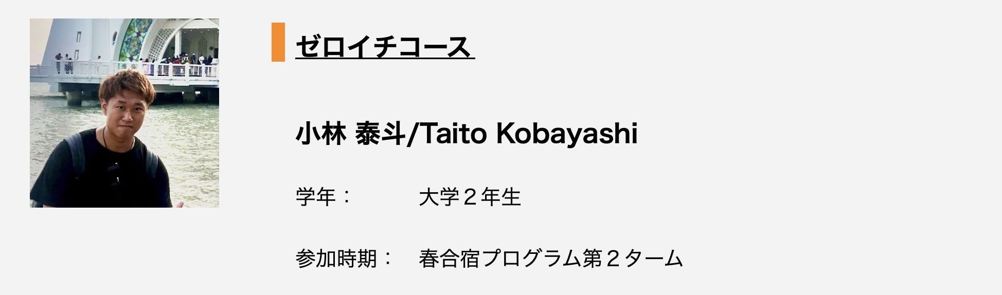 今まで苦手意識があった「言語化」が、実は周囲から見たら強みであったことは新たな発見でした。チームのメンバーが、自分のマインドを根底から変えるきっかけをくれたことは大きかったです。また、個別メンターシップでは目標としていた「やりたいことを具現化する」を達成するうえで、たくさんのヒントをいただきました。スキルはもちろん、マインドについても多く学びました。ここまで1つの会社や経営者の方について真剣に没頭して思考する経験を学生時代にできたことは、今までの学びそして新たな学びを深める機会となりました。どこまで相手の立場に立って、没頭して取り組むことができるかが人の心を動かすことにつながると学びました。