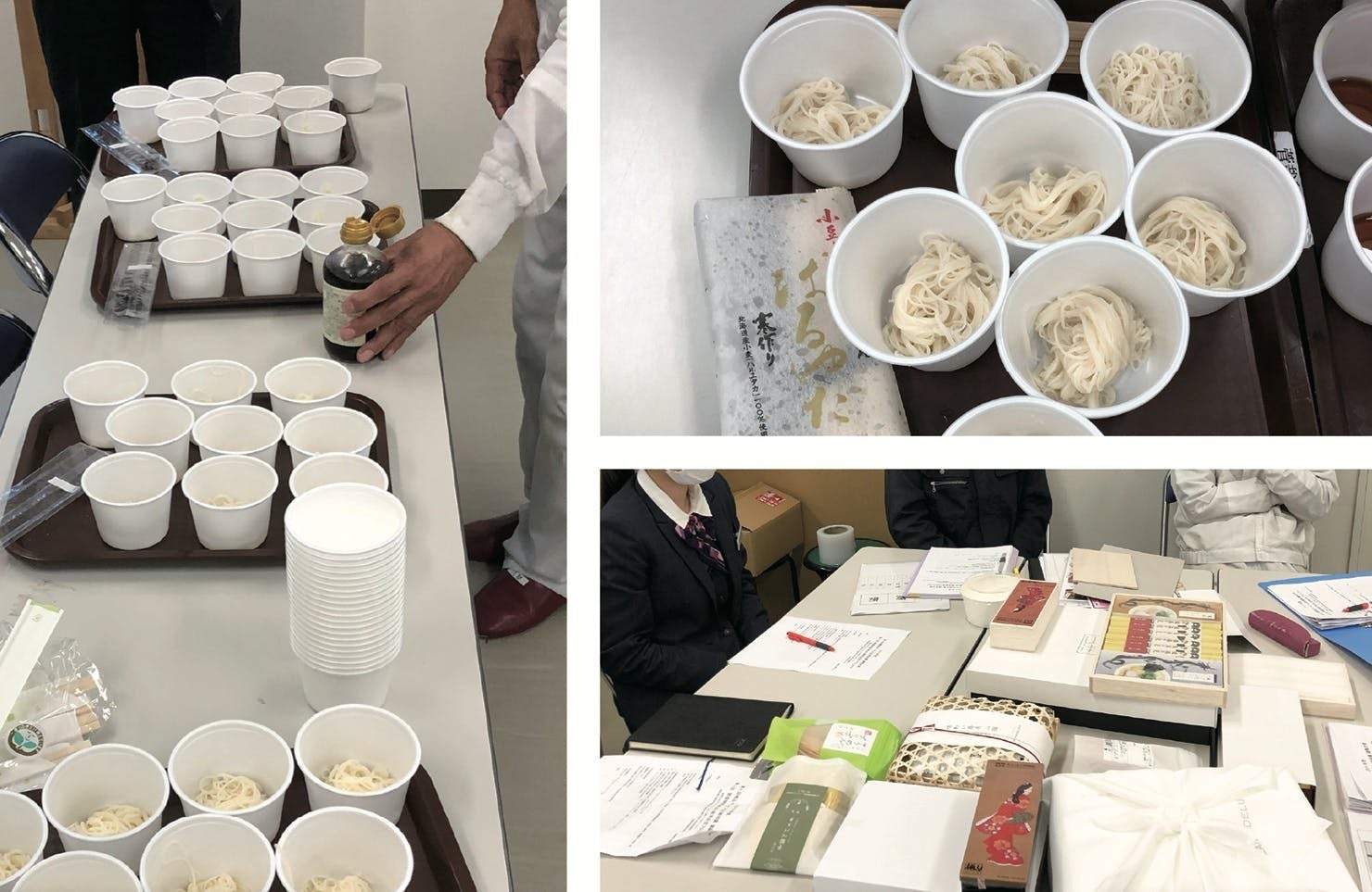 みなさん初めまして。兵庫県たつの市で1940年に創業し、『揖保乃糸』の製麺、加工、販売業をしている菅哉物産株式会社の企画課長:菅野 拓也(すがの たくや)と申します。 (写真中央)