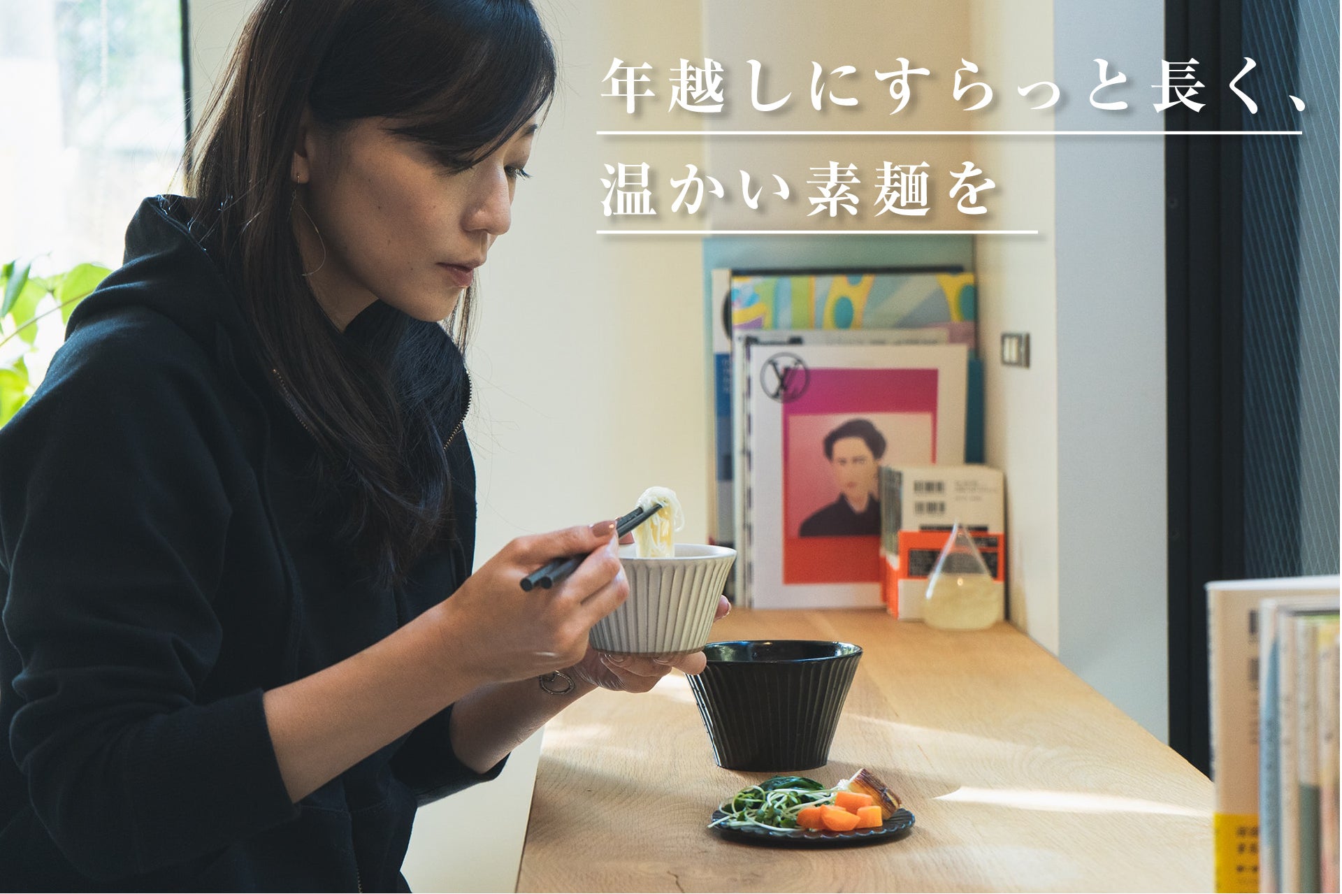 この冬は暖かい素麺とつゆ、お好みのトッピングで年越しをお楽しみください。