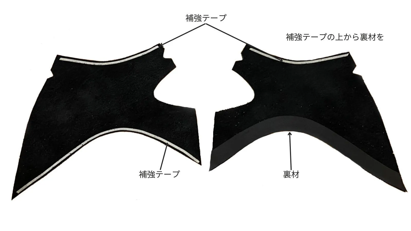 そのため、履き口裏とつま先裏に補強テープで補強もしています。