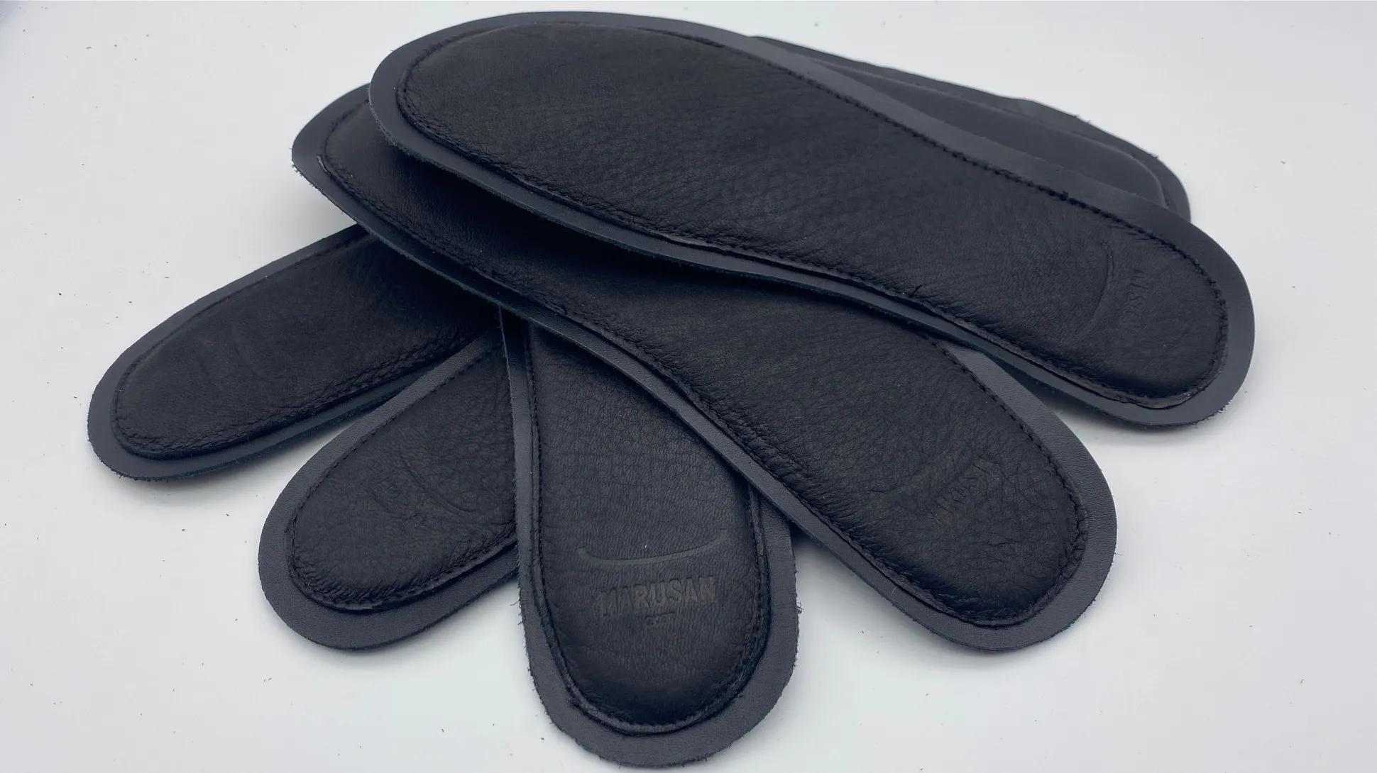 ②肌触り抜群の上質な鹿革のインソール。