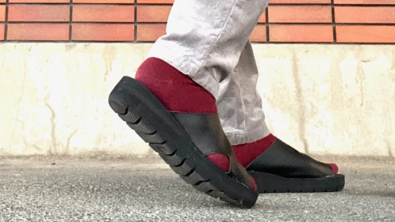 まず、サンダルを履いていて思うことは、歩行時にカカトとサンダルが離れてパカパカするのを解消したい。