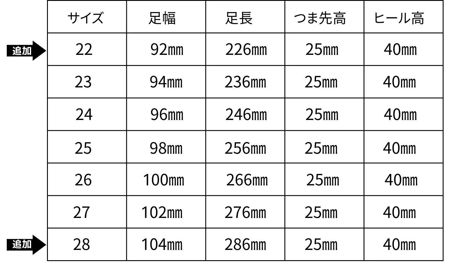 ・28(28cm~28.5cm)←追加の6サイズを用意しています。