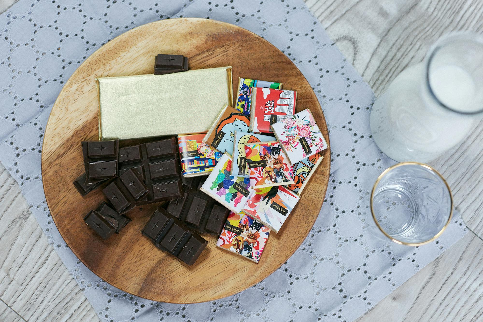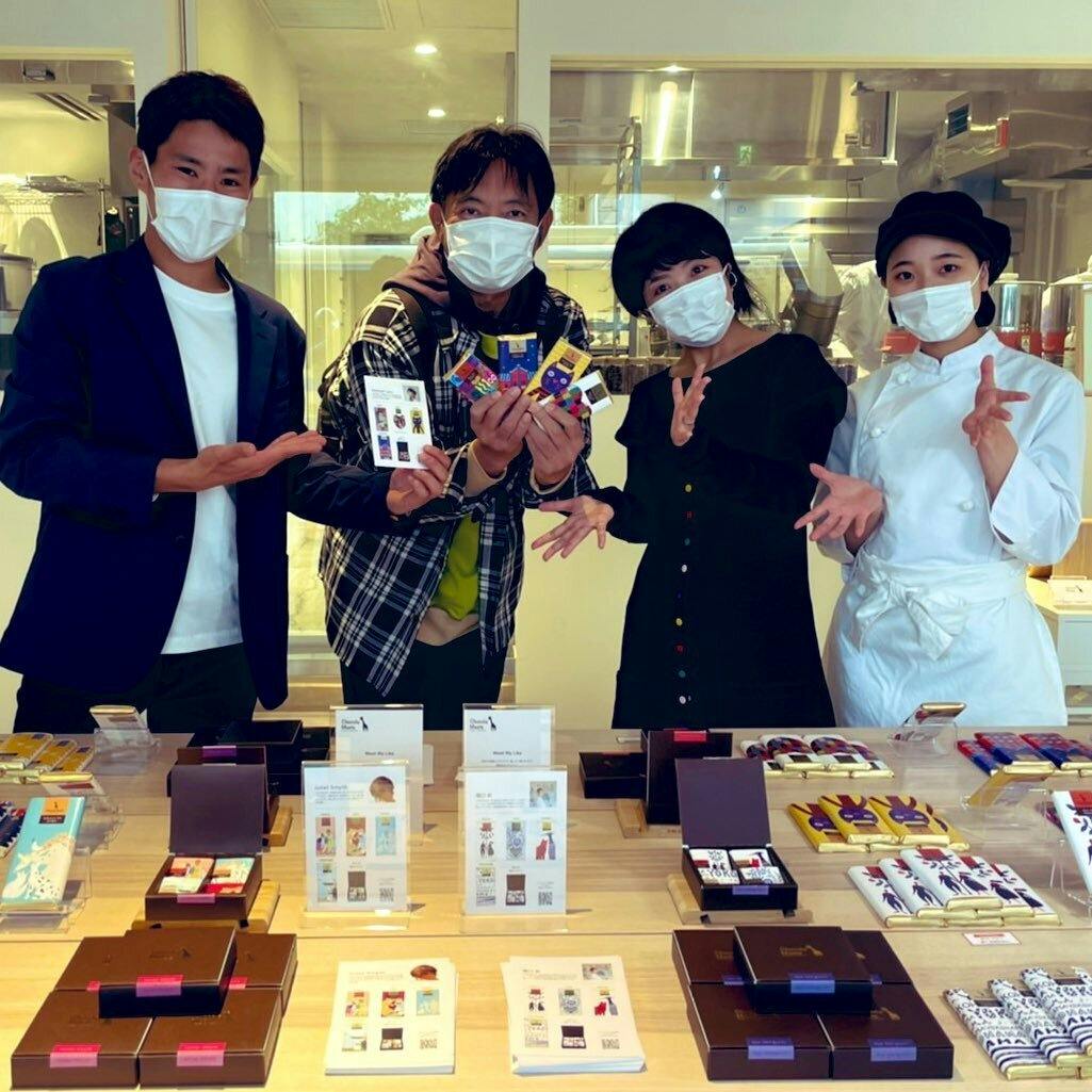 私たちは、横浜市・大倉山で工房を持ち、そこでカカオ豆からチョコレートを製造しているBean to Barチョコレートブランド「ショコラミーツ」です。 パッケージがアート作品かつ売上ごとに利益の一部がアーティストに還元される、という特徴を持っています。