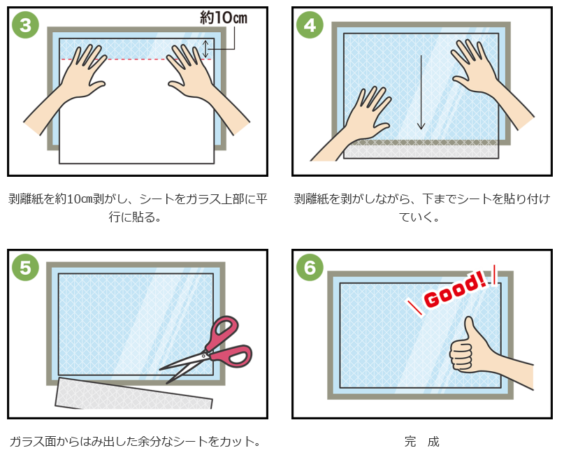 貼りやすく飛散防止効果を両立したガラス飛散防止シート