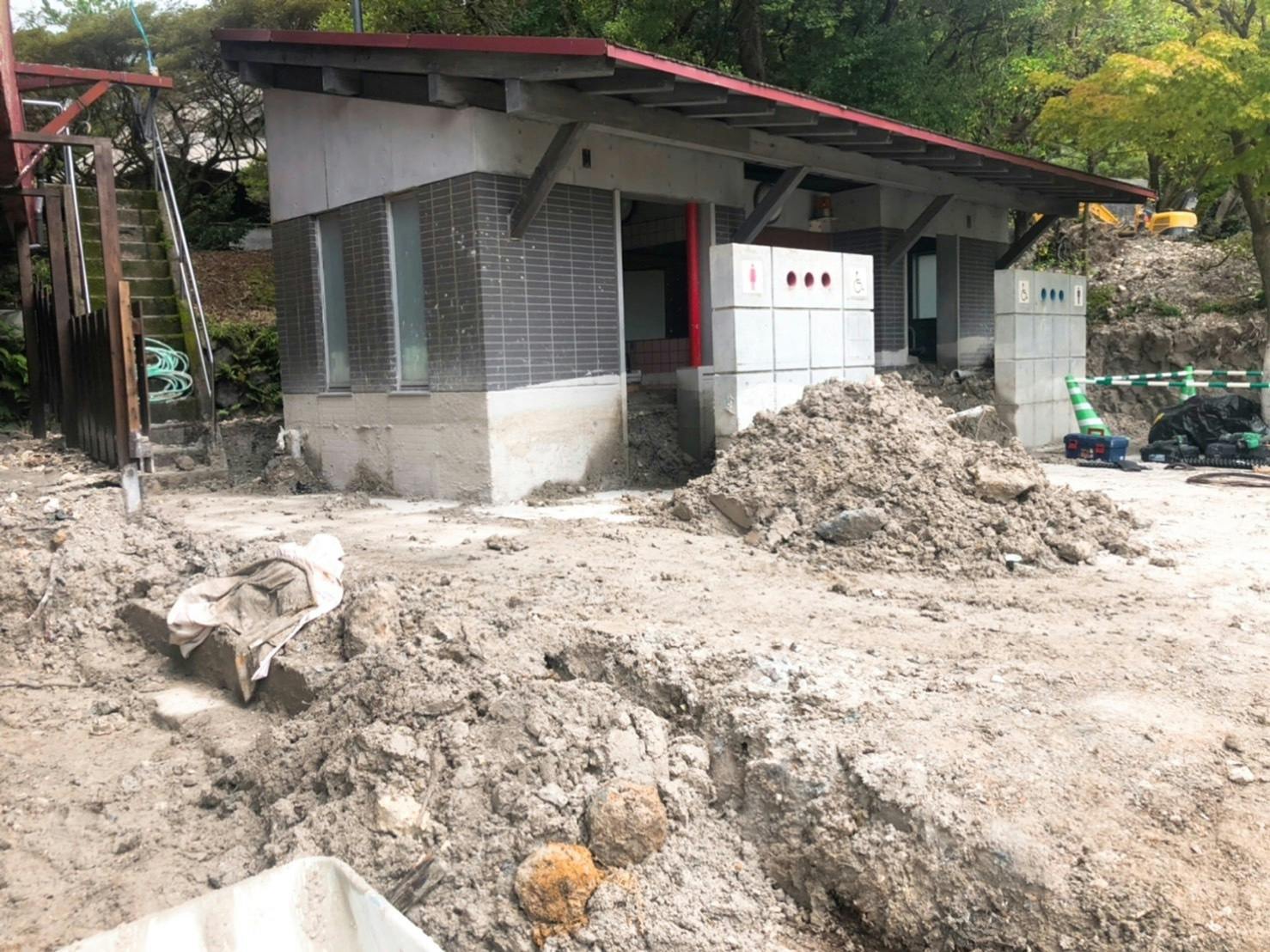 ・土石流によって跡形もなくなってしまったお土産品店やトイレ・駐車場の復旧