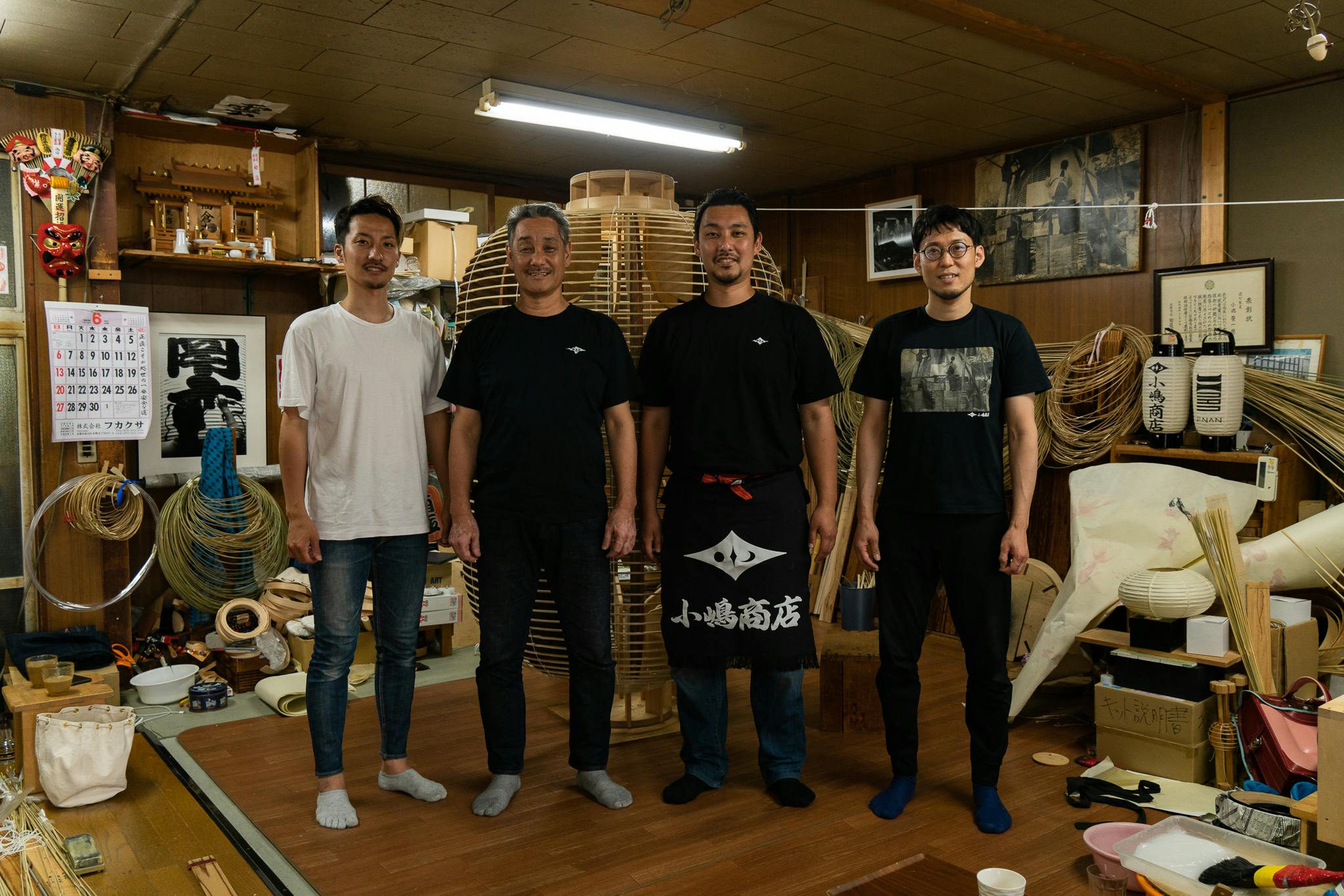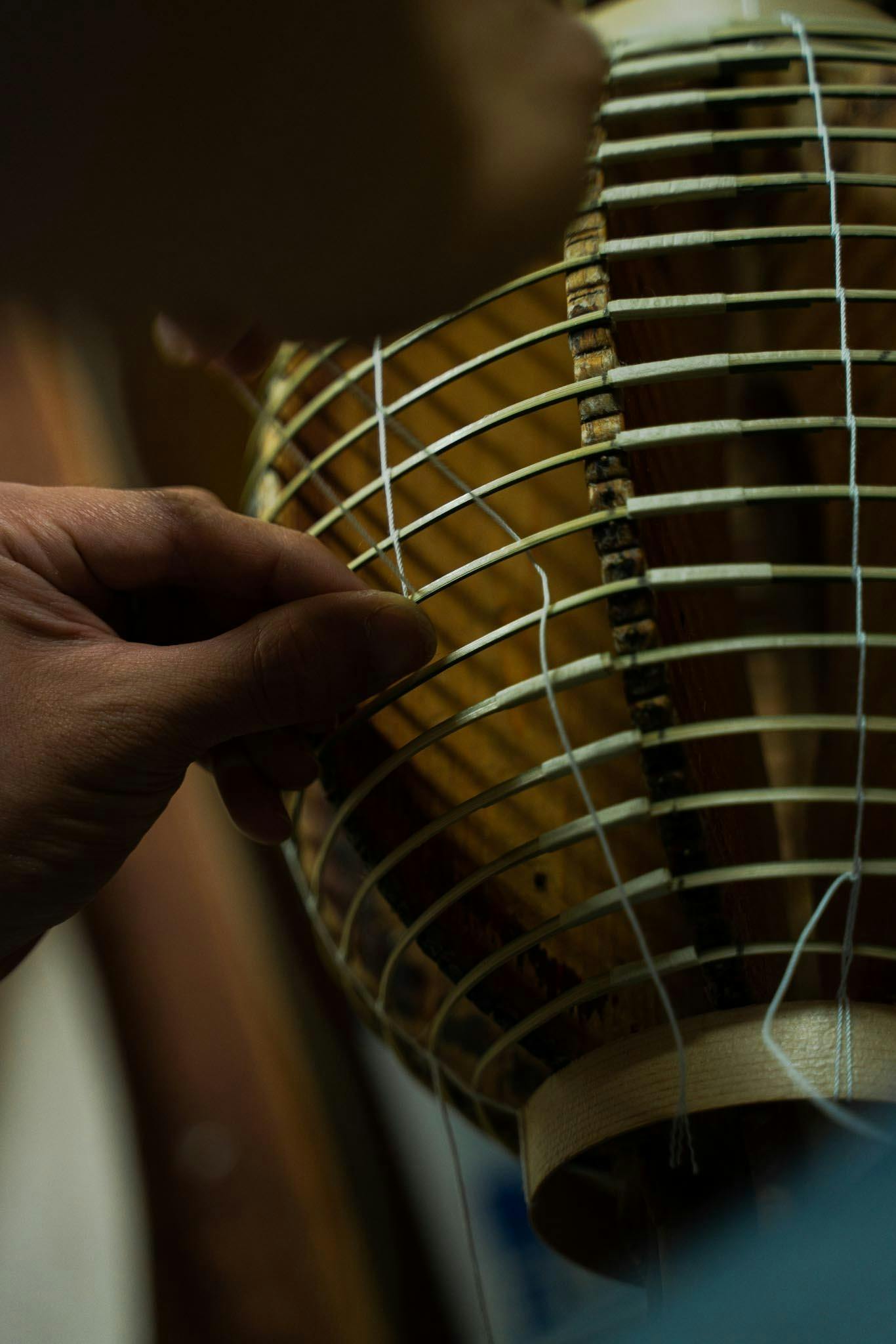 竹割から紙貼りまで一貫した手作業で頑丈で無骨な小嶋式提灯。