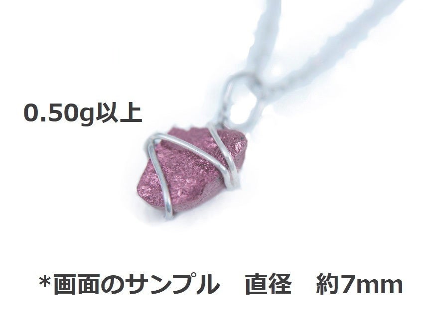 18金のパープルゴールドのカケラを、職人がプラチナ線で手巻き加工してペンダントを製作しました。金属としてのパープルゴールドの表情をお楽しみください。