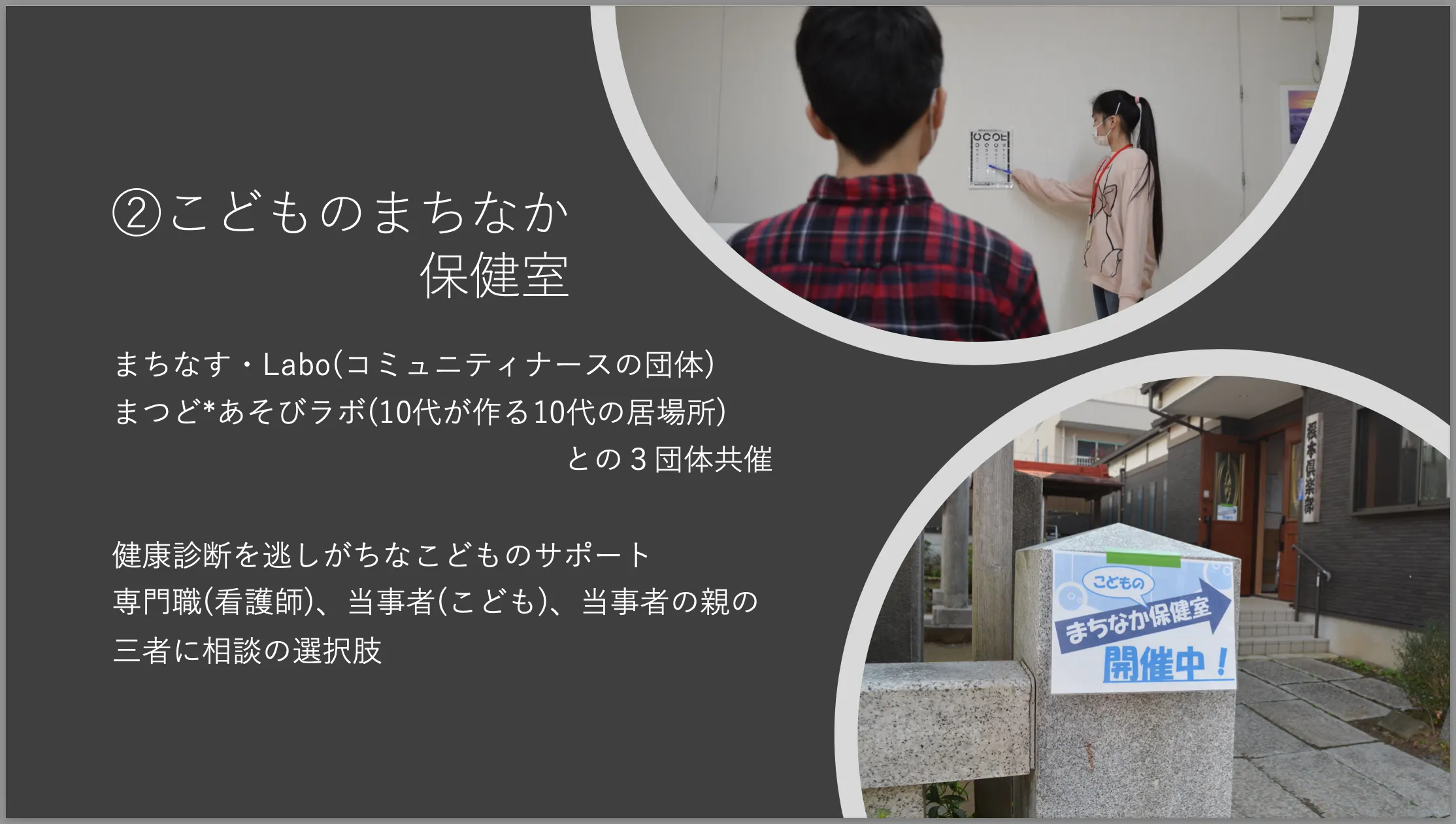 - ②こどものまちなか保健室