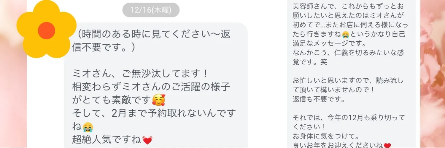 ※こちらはミオさんへ送られてきたお客様からのメッセージです。
