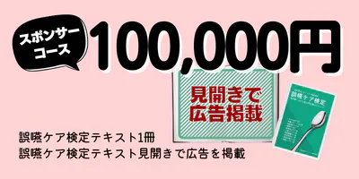 誤嚥ケア検定テキストのスポンサー枠(見開き1ページ)に、会社ロゴ・サービス掲載