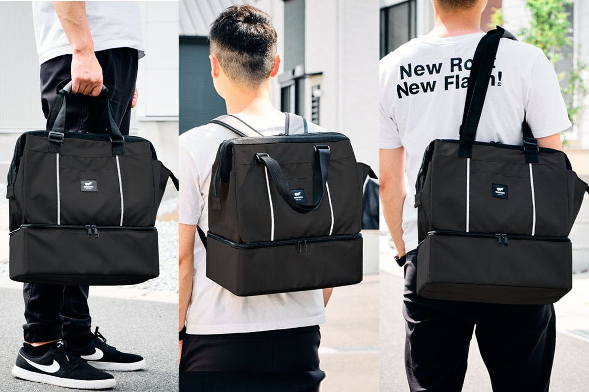 荷物が少ないときの「がま口型」から、荷物が増えたときの「ボックス型」に。両手を空けたいときの「リュック」から、ちょっとそこまで持ち運びたいときの「手提げ」や「肩掛け」に。