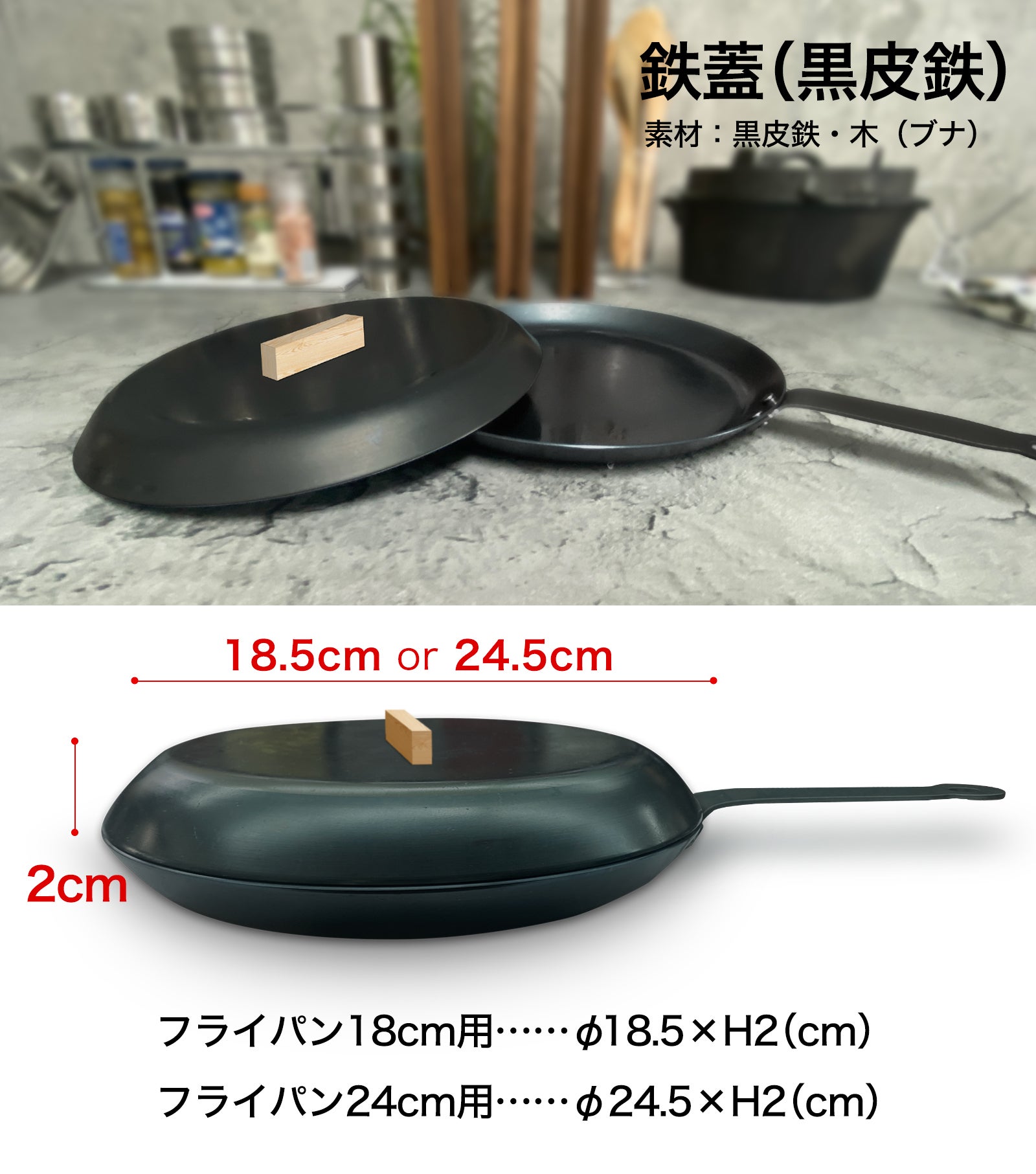 フライパンと同じ形状、素材の「鉄蓋(黒皮鉄製)」も作りました。横から見たときのデザインの統一感、一体感がとっても素敵なんです!