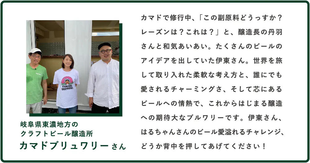 ワインやシードルなど、果物を使ったお酒にもいろいろな種類がありますが、特にクラフトビールは副原料としてなんでも入れることができます。りんごや桃、葡萄にいちごといった果物はもちろん、果物以外の農産物も幅広く入れることができて、可能性が広がります。もったいない問題が、大好きなビールで解決できるなんて、やるしかない!と思いました。