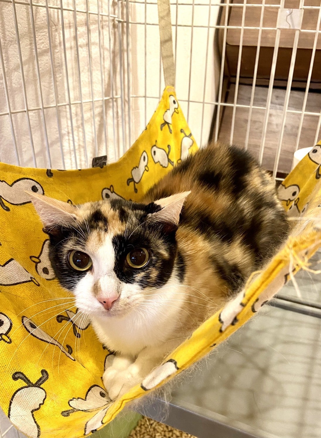 三毛猫のポピーちゃん。なかなか手ごわい子です。