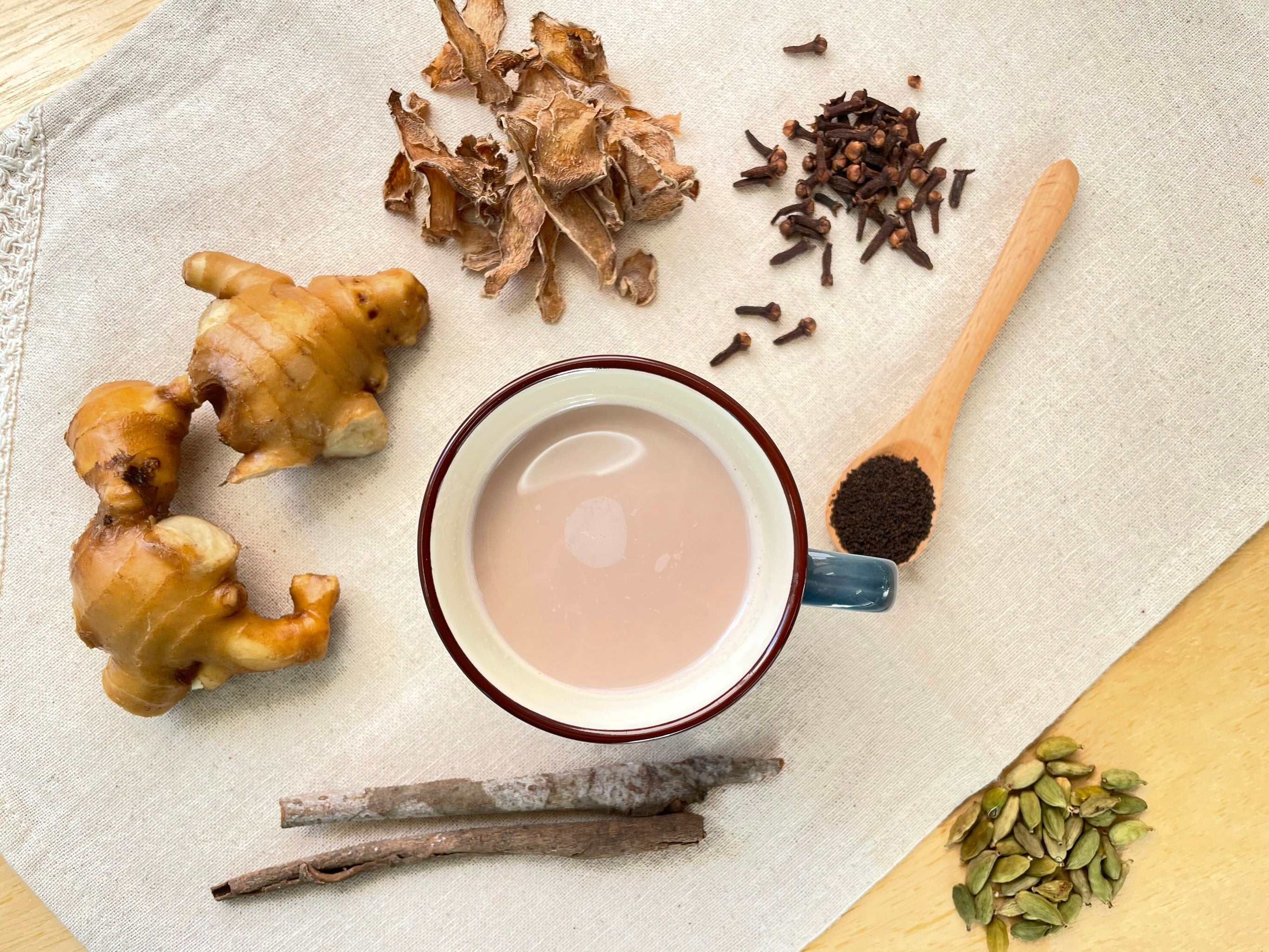 カルダモン、クローブ、バニラビーンズはホールの物を、シナモンはパウダーを使用して絶妙な配合比率でスパイスの香りを感じられます。