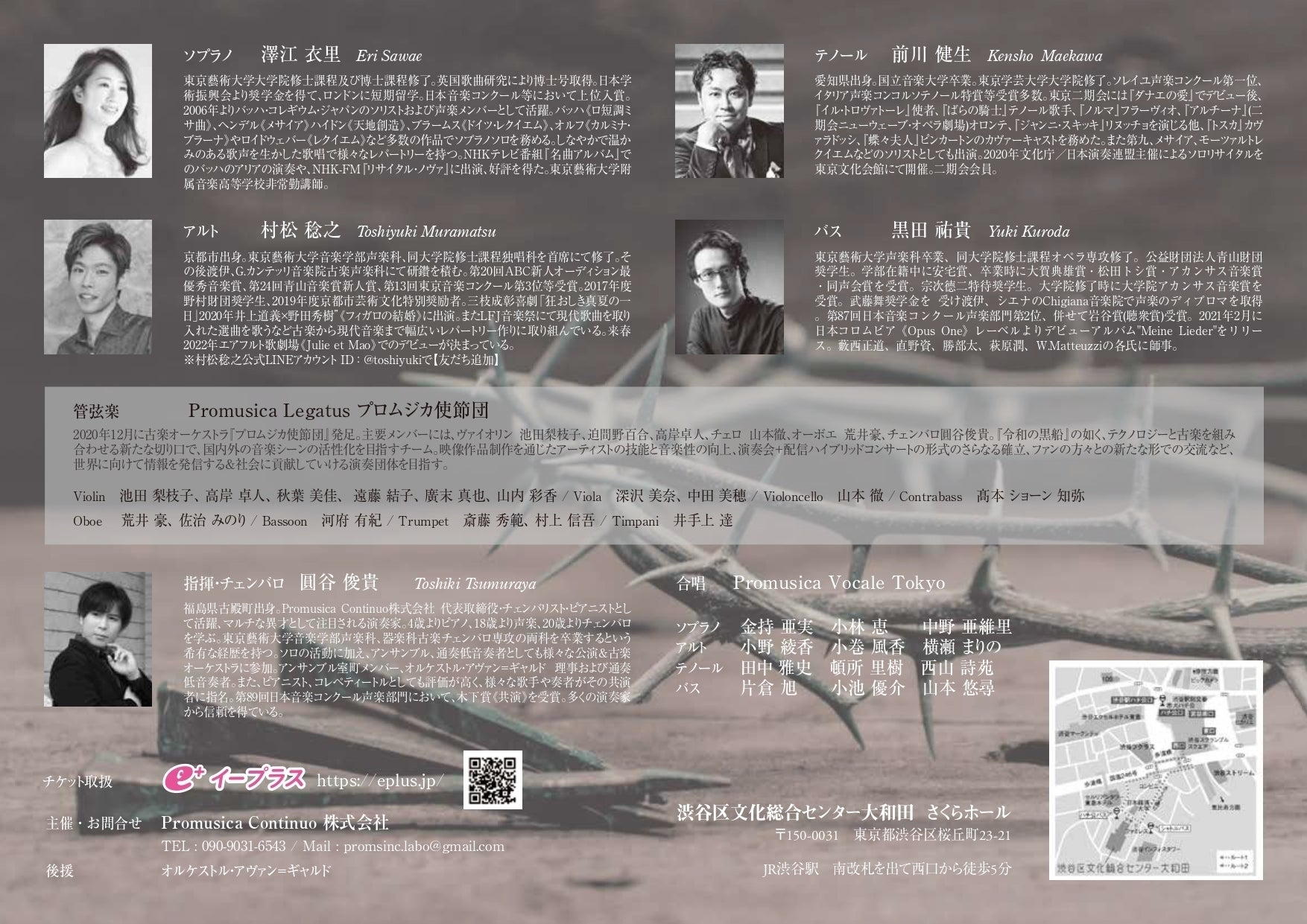 私共は、"Promusica Baroque Academy" 古楽オーケストラ『プロムジカ使節団』と申します。2020年12月にチェンバロ・通奏低音奏者の圓谷俊貴により創設されたアカデミックでプロフェッショナルな古楽団体です。