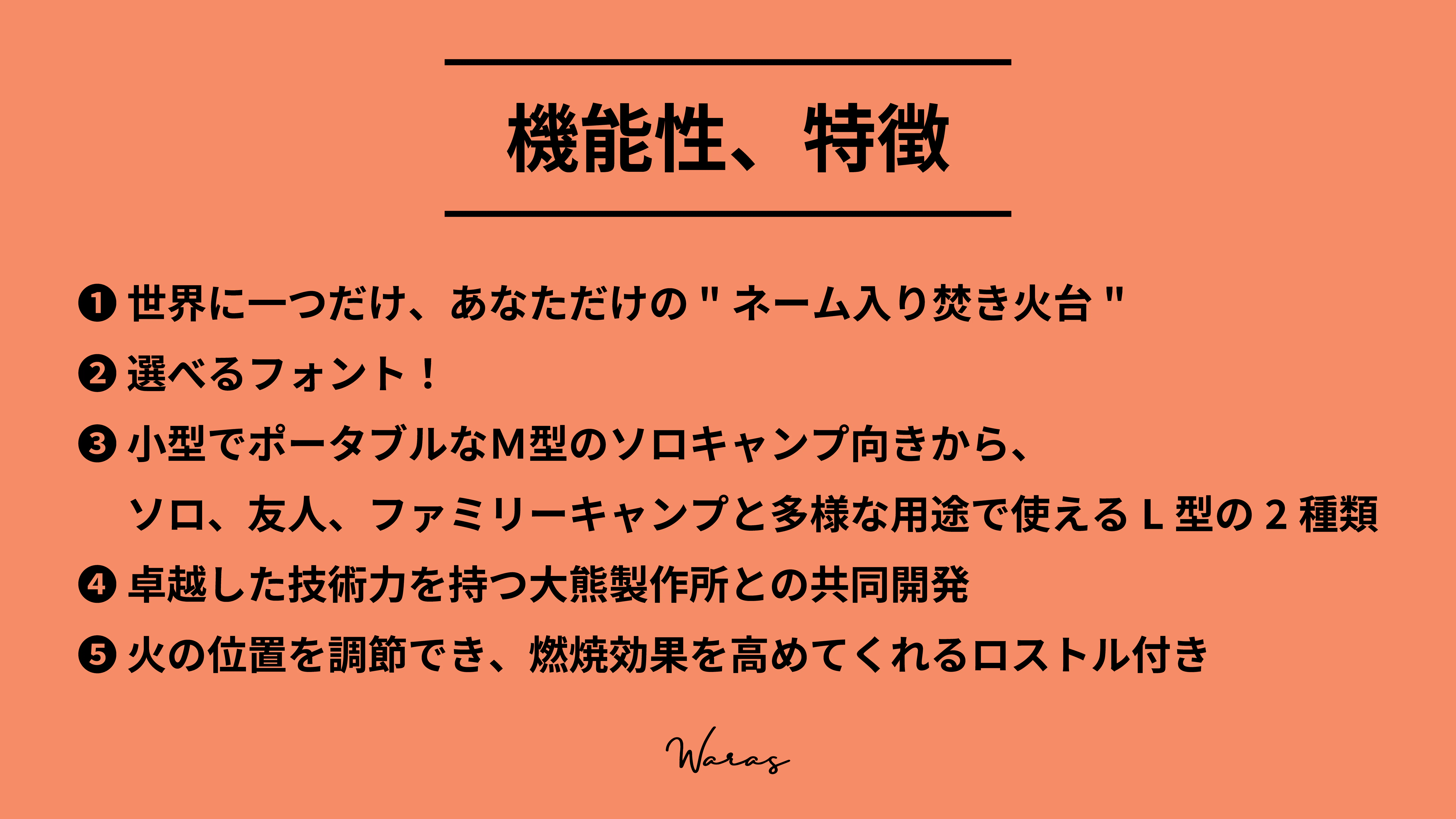 *「切り文字ネーム入り焚き火台」は、株式会社WARASによる意匠権登録申請中のデザインです。