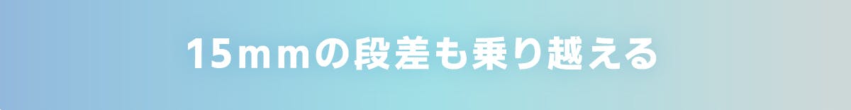 15mmまでの段差を乗り越えることができ、低い敷居にも立ち往生することなく