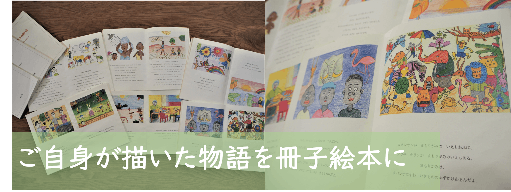アフリカで過ごした幼年期の記憶を自身のお子様に伝えたいと思い、手作り絵本を作製
