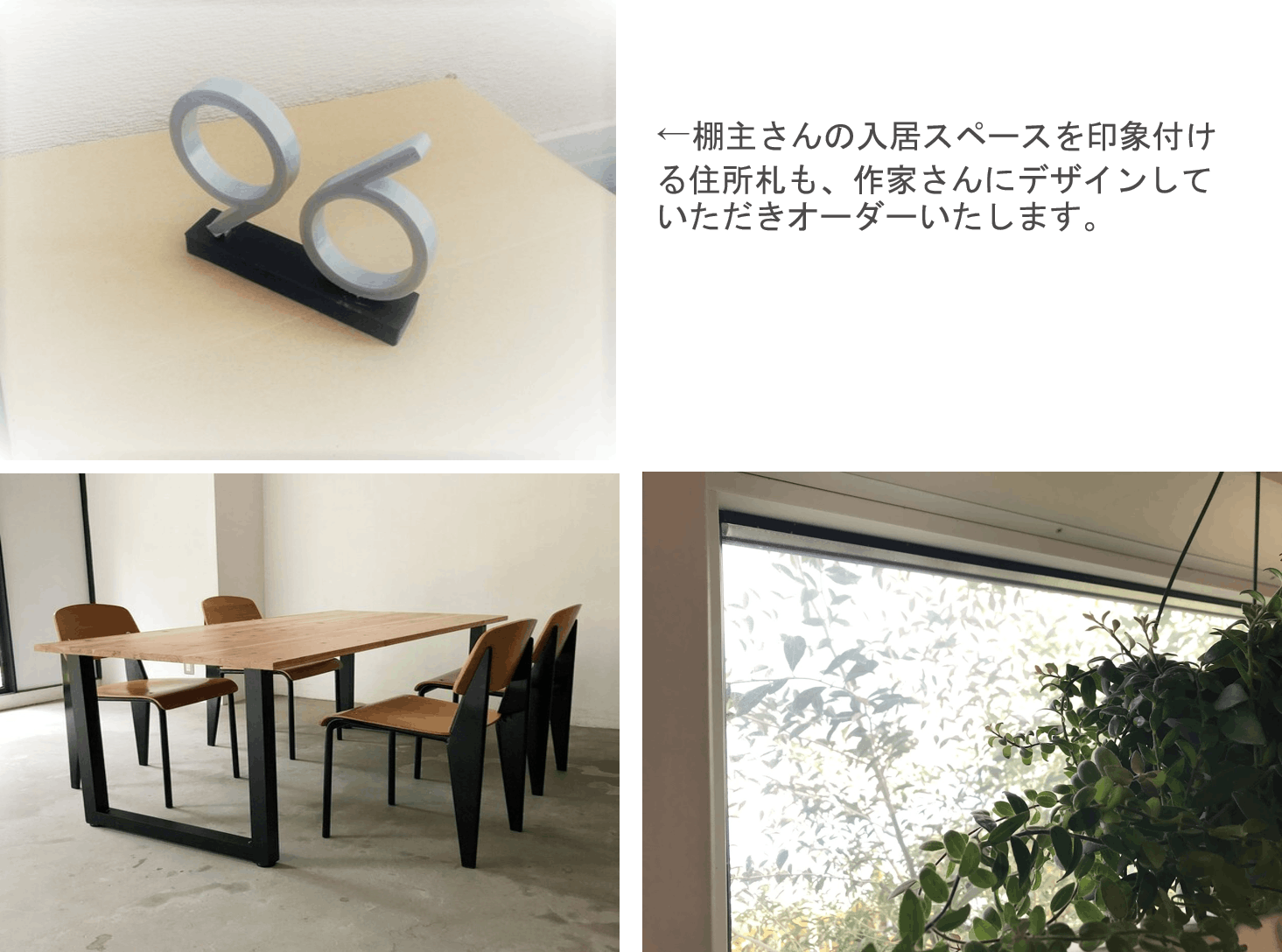 私たちは棚主さんの住居スペースをより快適な空間とするために、本棚、テーブルはオーダーメイド、照明、床材、ベランダのグリーンなどの準備を進めています。