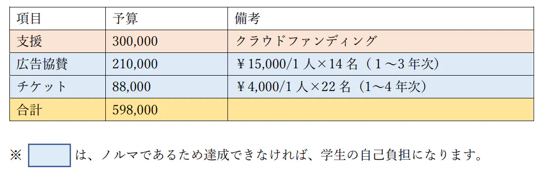 しかし、昨年度は有観客での開催ができなかった為、活動資金であったチケット収入や企業の広告協賛が取れず、貯金も切り崩したため、今年度は赤字でスタートを切る状態となっています。また、発表会を実施するにあたり、感染拡大防止策のための出費が必要となり、例年とは異なる出費が必要な状況にあります。