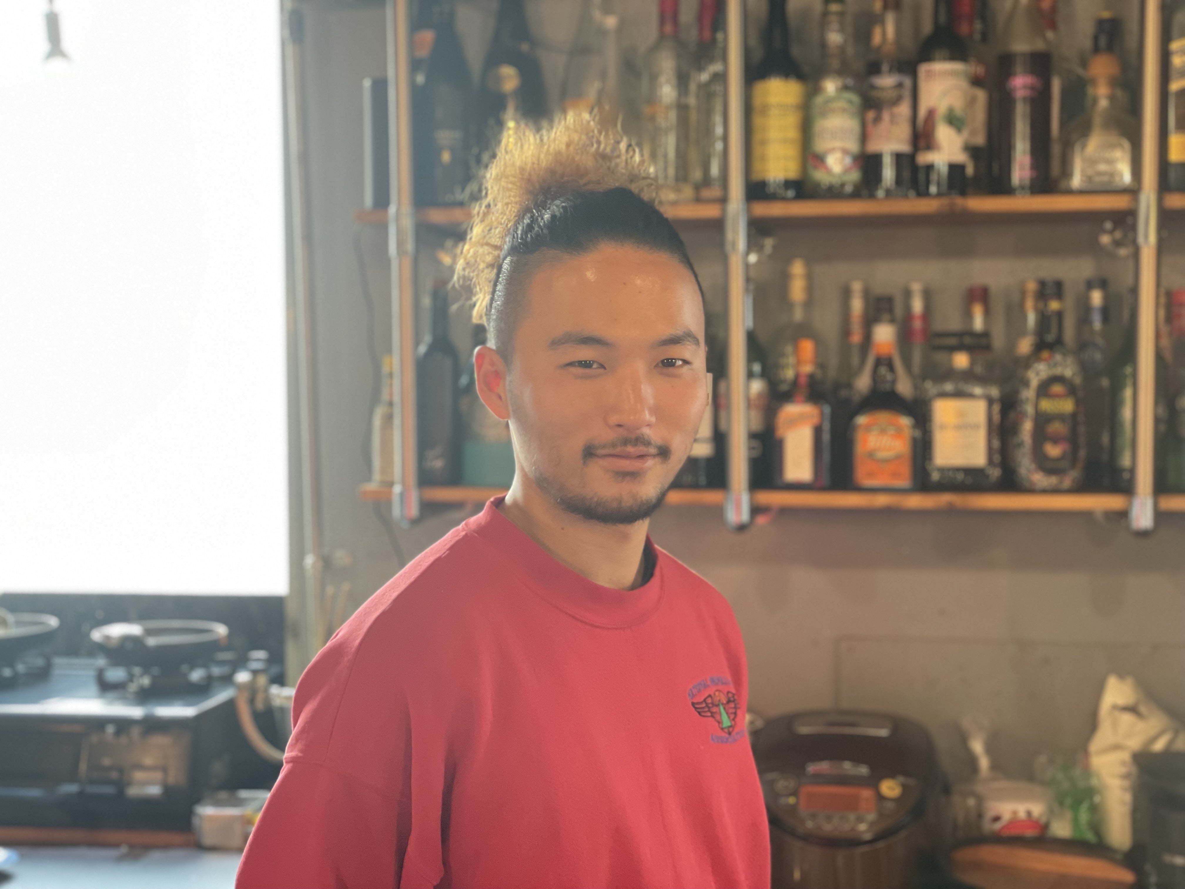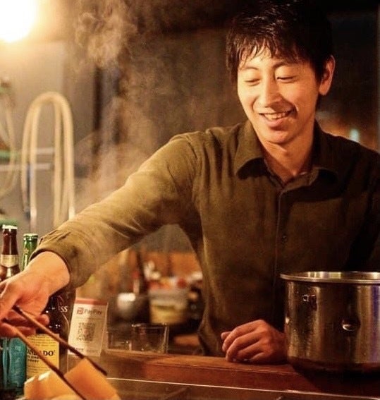 その後、旅中に出会った大阪北新地の飲食店に就職し約3年料理の修行に励む。