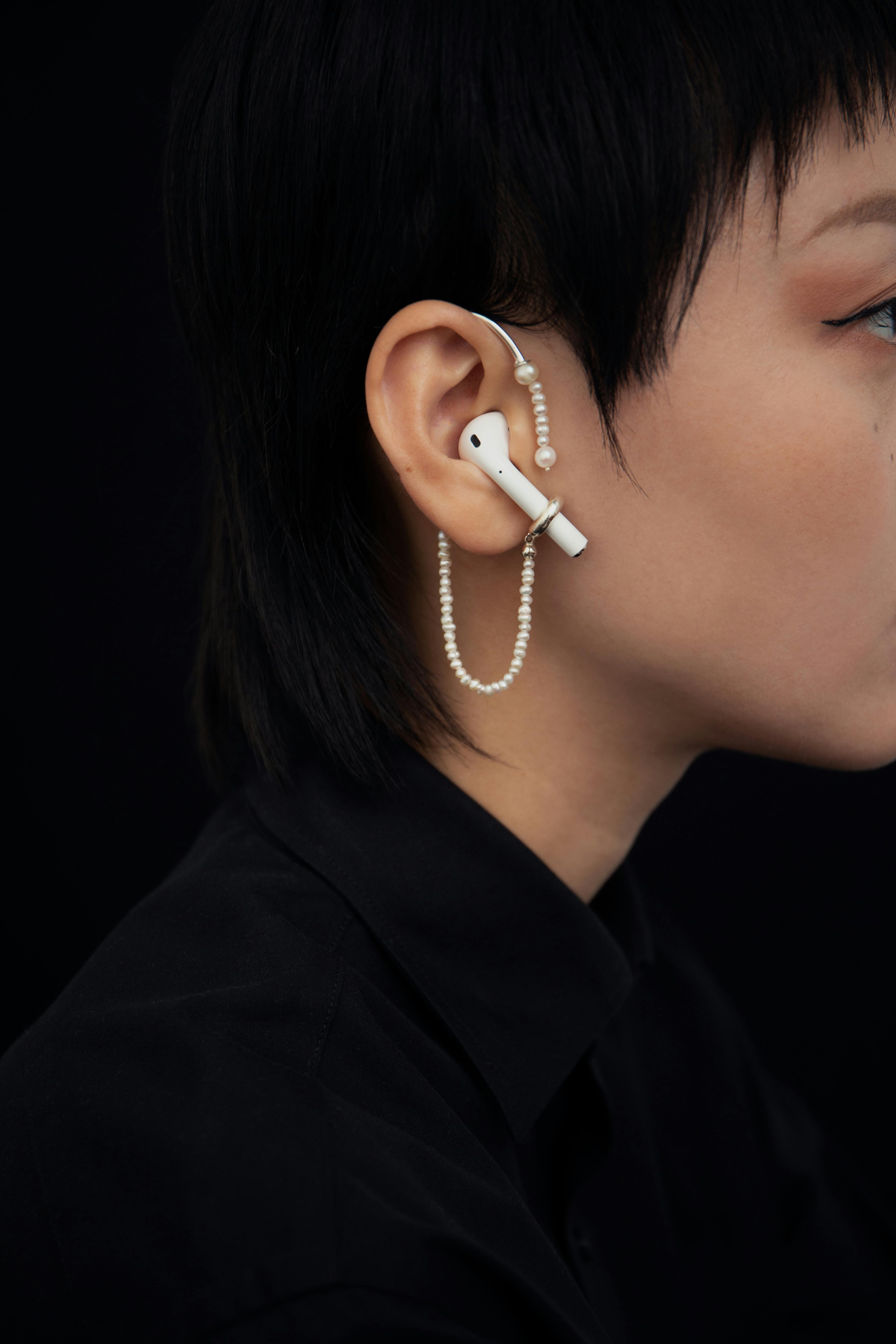 大小のパールが作り出す目新しいAir Pods対応ジュエリー。
