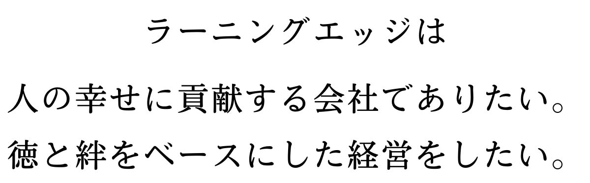 ラーニングエッジ社の「人の幸せに貢献する会社、徳と絆をベースにした経営」という思いに基づいた商売を営む者の心得を広く伝えることができれば幸いです。