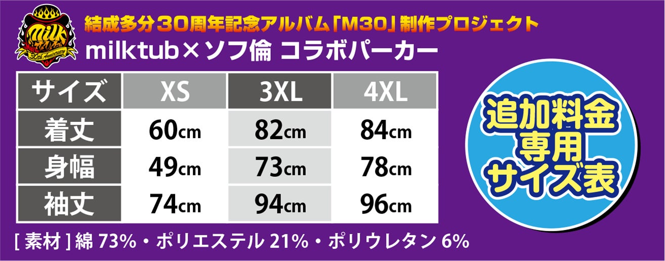 ※通常選択できるサイズはS〜XXLまでご用意してますが、XS/3XL/4XLの方は料金上乗せ支援でサイズご用意致します。milktubはFATのファンを見捨てない。