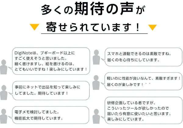 2023/12/09 12:00お世話になっております。MKトレードです。本日、『T-Note2』を公開させていただきました!大変反響をいただいた初期モデル『T-Note』発表から2年が経ちました。充電ポートが待望のType-Cとなりました。今回もツバメノート社推奨デジダル文具として、ツバメモA5(方眼)が付属します。★新商品『T-Note2』https://camp-fire.jp/projects/view/719281『T-Note2』は、メモ帳やノートに書くようにパソコンやスマホに書き写すことができます。①手書きメモをリアルタイムで「デジタル化」②パソコン上に「手書き」で同時表示出来、オンライン会議にも使用できる!③専用スマホアプリで同時描写もできる!④「ツバメノート」の『ツバメモA5』を付属!書きやすいフールス紙⑤「スタイラスペン先」を使って紙を節約!お得なリターンは「数量限定」となります。この商品をもっと多くに方々に知っていただきたいと思っておりますので、SNSなどでのシェアなど大歓迎です!ぜひお見逃しなく、ご検討をどうぞ宜しくお願いいたします!---------------------------------------------------■リピーター様向けキャンペーン■今回のプロジェクト『T-Note2』をご支援いただいたリピーター様に対して「先着50名様 オリジナルポケットメモ帳プレゼント」いたします!★応募方法★今回のプロジェクト『T-Note2』をご支援のうえ、「メッセージを送る」より下記を記載してご応募ください。・過去にご支援くださった弊社プロジェクトの商品名・過去支援ID・氏名---------------------------------------------------最後まで、どうぞよろしくお願いいたします。https://camp-fire.jp/projects/view/719281『T-Note2』プロジェクトスタッフ一同************************************************************★同時開催中プロジェクト『DigiNotePro3』画期的な電子タブレットhttps://camp-fire.jp/projects/view/717657++++++++++++++++++++++++++++++++『LetSketch』300dpi小型サーマルプリンターhttps://camp-fire.jp/projects/view/681331追加購入などに便利な「MKTrade限定公開ショップ」もぜひご覧ください♪https://mktrade2.official.ec/ もっと見る
