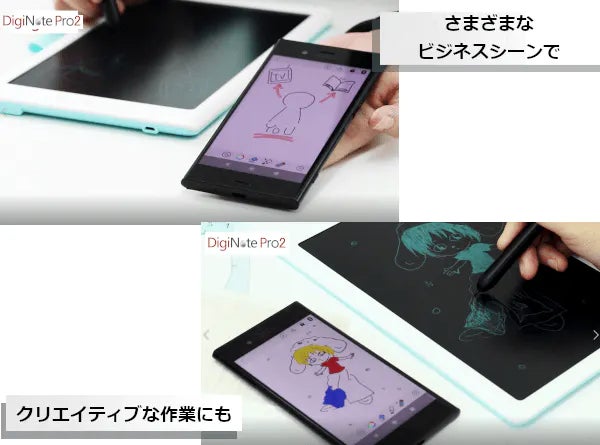 スマホの専用アプリと連携し、描画を同時に表示可能。アイデア次第でさまざまな場面で活躍します!