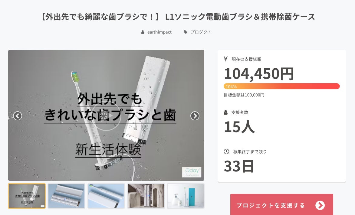 私たちは、今回このプロジェクトを成功させて、L1ソニック電動歯ブラシ&携帯除菌ケースの一般販売を目的としておりますので、どうぞ皆さまの本プロジェクトへのお力添えをよろしくお願い申し上げます。