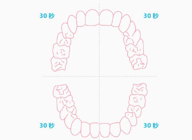 2分間、しっかりと磨けるように、口腔内を4つに分けて30秒ごとにバイブレーターが作動して次のエリアを磨くようにお知らせしてくれます。