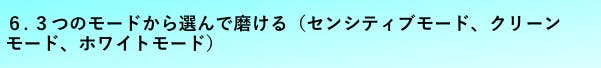6. 3つのモードから選んで磨ける(センシティブモード、クリーンモード、ホワイトモード)