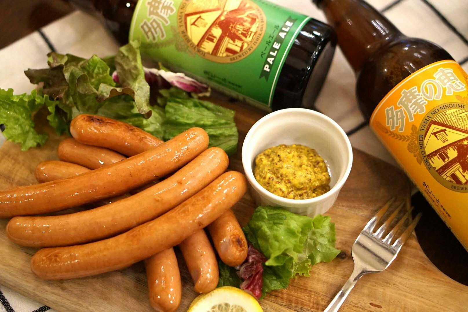 直火式ソーセージと一緒に、同じ福生市で造られる地ビールが楽しめるセットです!