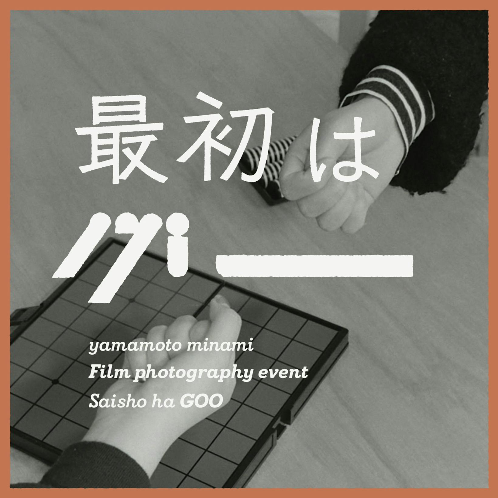 2022/04/23 06:48モノクロフィルム撮影イベント「最初はグー」山本みなみ2022/5/3(火),4(水),5(木) -----写真を撮ってもらうときの緊張感を緩めるために撮影者の私と写る2人が言葉でコミュニケーションを交わす。最初の写真は、「撮る人と写る人の距離」一旦、カメラの前から離れて写る2人が向き合って時間を過ごし言葉以外のコミュニケーションを交わしてもらう。2枚目の写真は、「写る2人の間にできた距離」それぞれの「距離」を、モノクロフィルムで残します。-----[イベント概要]1 2人で写真を撮ります2 ジェンガ、オセロ、あっち向いてホイの順に2人でゲームをします3 もう一度写真を撮ります[会場]Alternative Space yuge(〒606-8345 京都府京都市左京区東門前町519-10)[時間]13:00−18:00(最終受付17:45)[料金]1組 6,000円(お一人 3,000円)※送料別[仕上げ]手札サイズ(80×100mm)×2枚を一面の台紙に仕上げて約2か月後にお渡し。(※仕上げはお一人につき一つ)イベントは事前予約制(2人組のみのお申込み)となります。予約は以下のリンクより!https://docs.google.com/forms/d/e/1FAIpQLSfiNI7MjK_AdMjq97ST44me_PATLH164UyYtCccjyv77Y69Xw/viewform?usp=sf_linkgraphic, motion /takei taihei @crispy_morattaphoto /yamamoto minami もっと見る京阪三条駅からyugeまでの道のり紹介