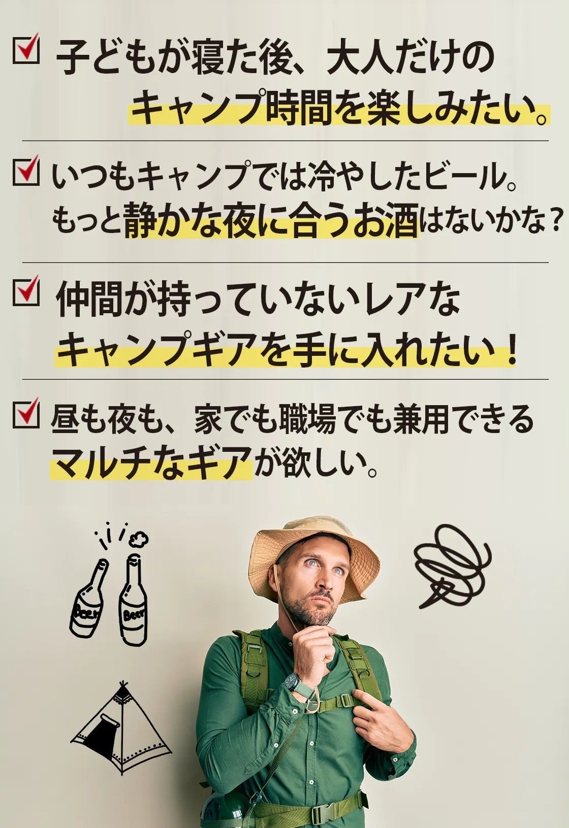 大人のアウトドアに欠かせないお酒を