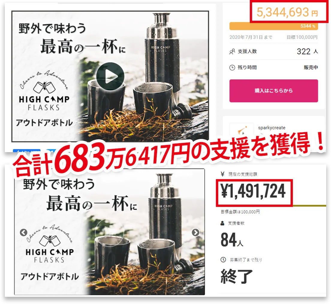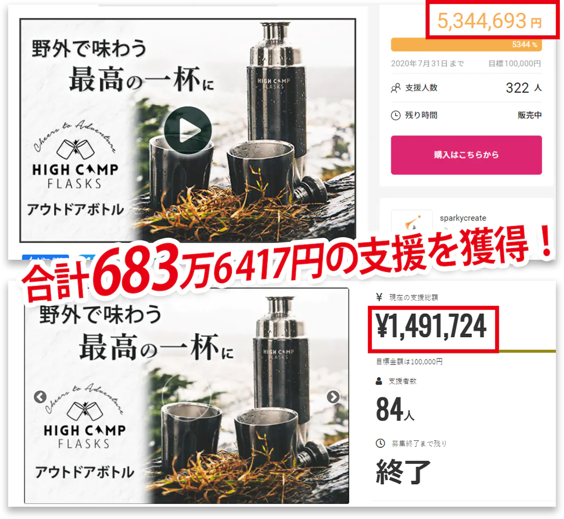 2つのクラウドファンディングで、合計683万6417円の支援を獲得!