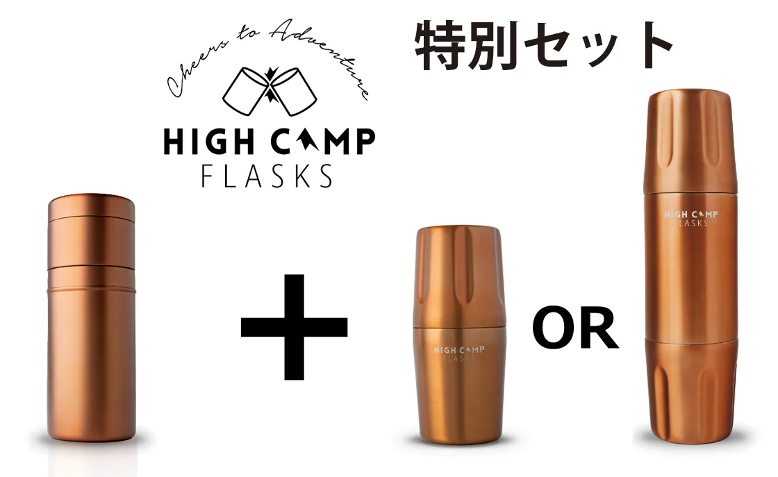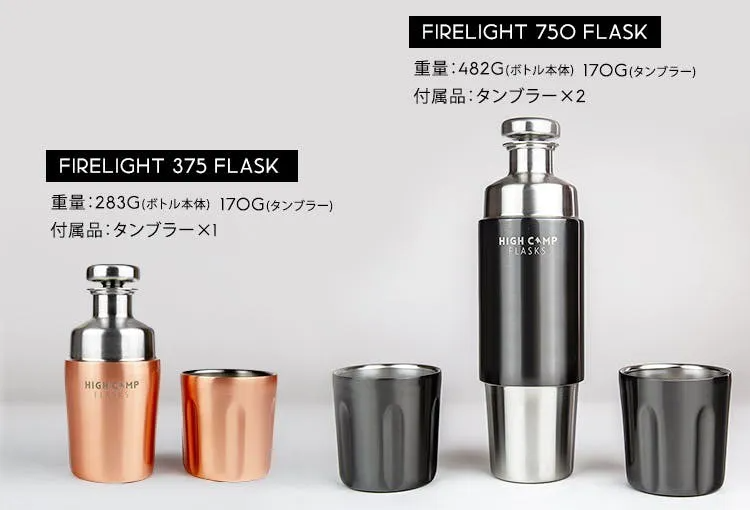 HIGH CAMP FLASKSの第一弾商品であるタンブラー付きボトル『Firelight Flask』との特別セットもご用意しました。