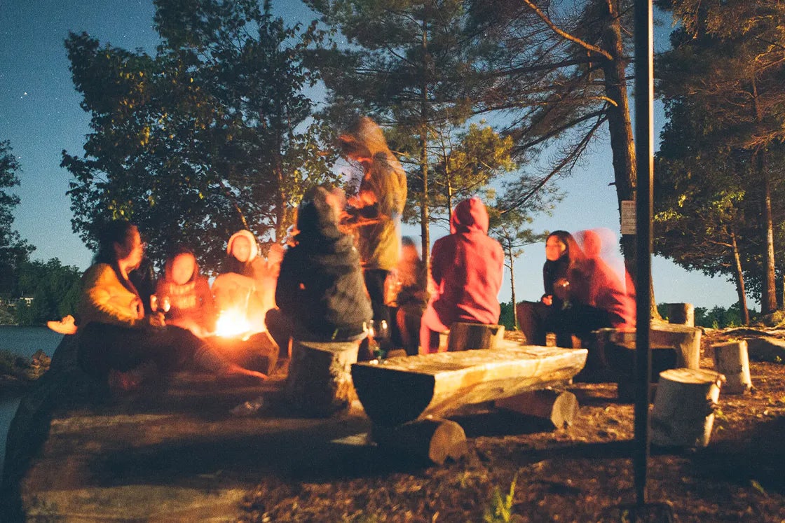 家族、友人と焚き火を囲み語らいながら