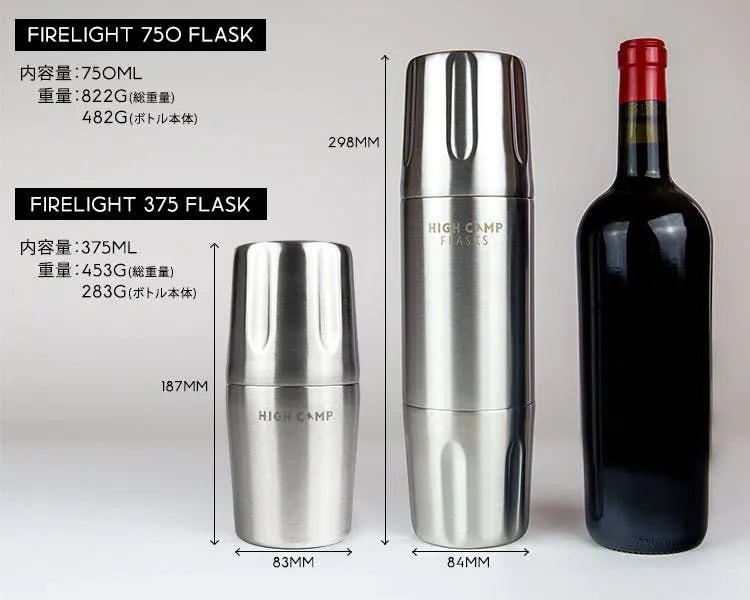 Firelight Flaskは、容量が375mlと750mlの2サイズ。