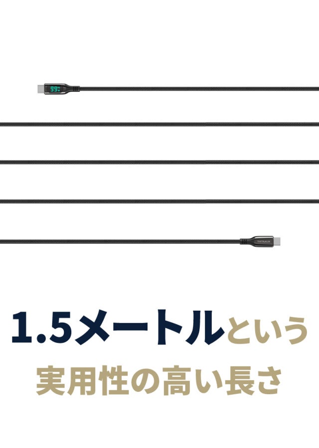小数点第1位まで表示が可能なTIKTAALIK 100W PD Cableは他の充電ケーブルには見られないきめ細かな活用が可能です。よりきめ細かでスマートなご使用をお望みの方に役立つ機能です。